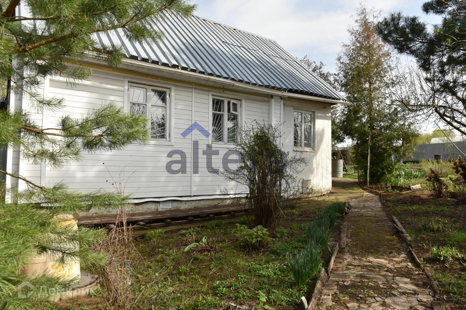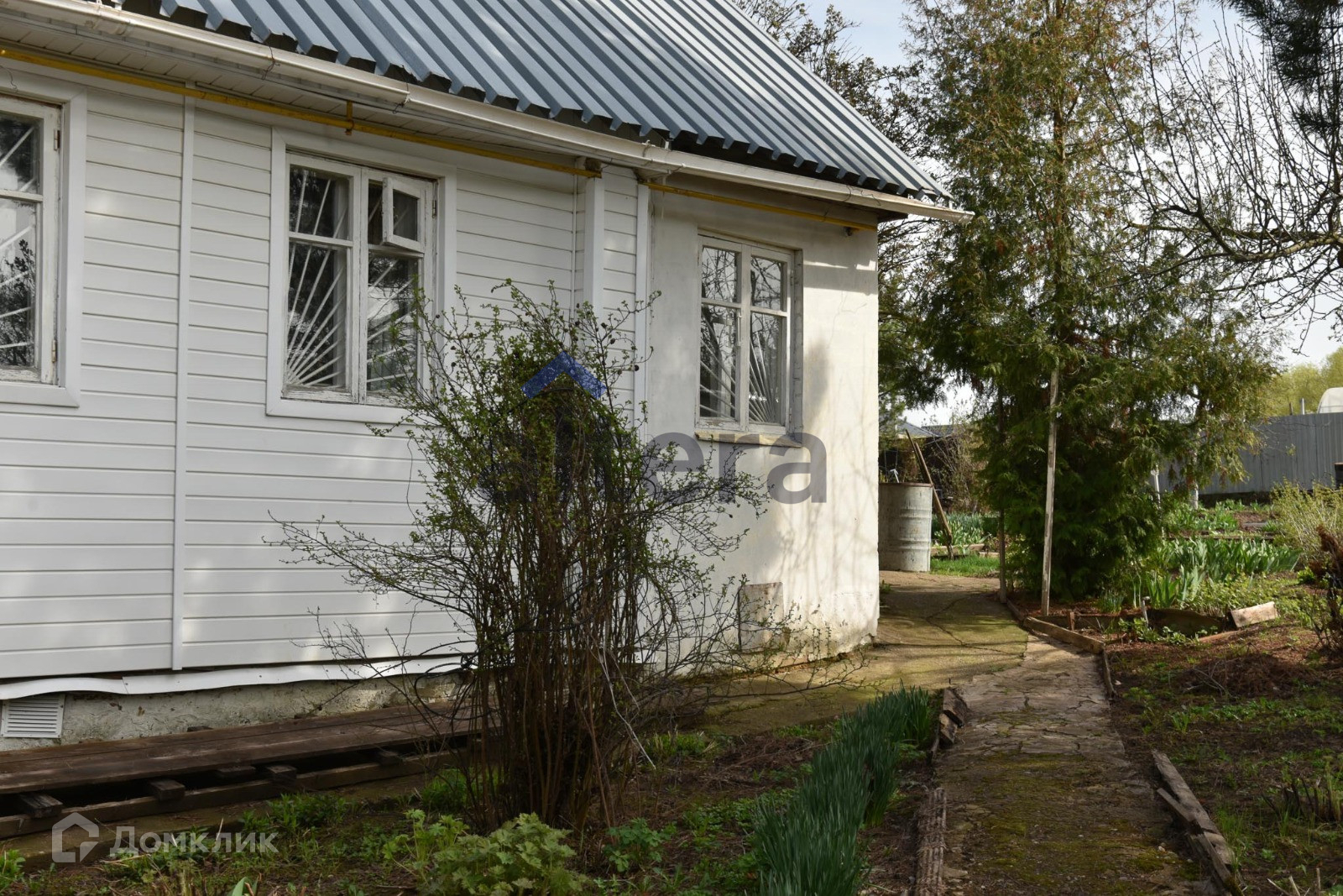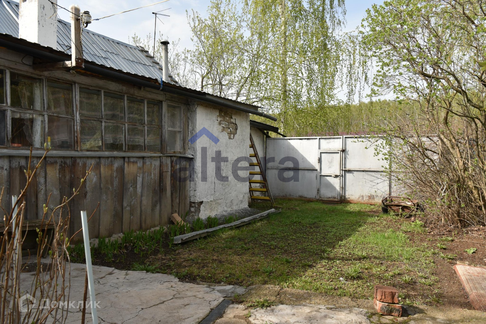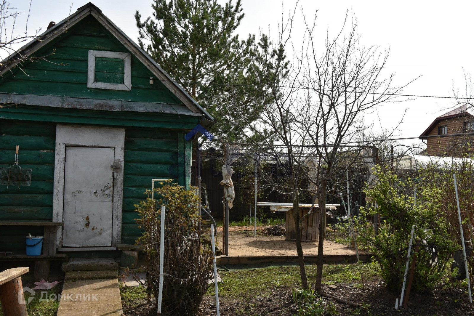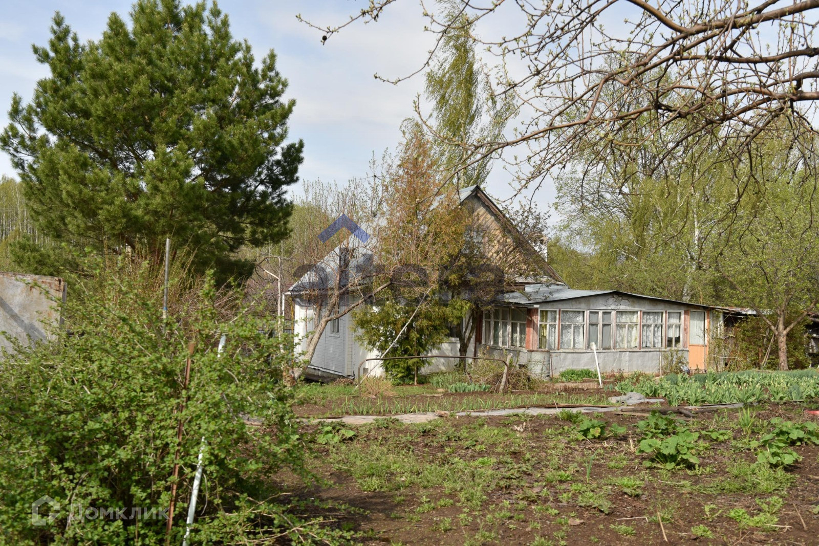 Есть небольшой деревянный дом 70 кв м и баня.