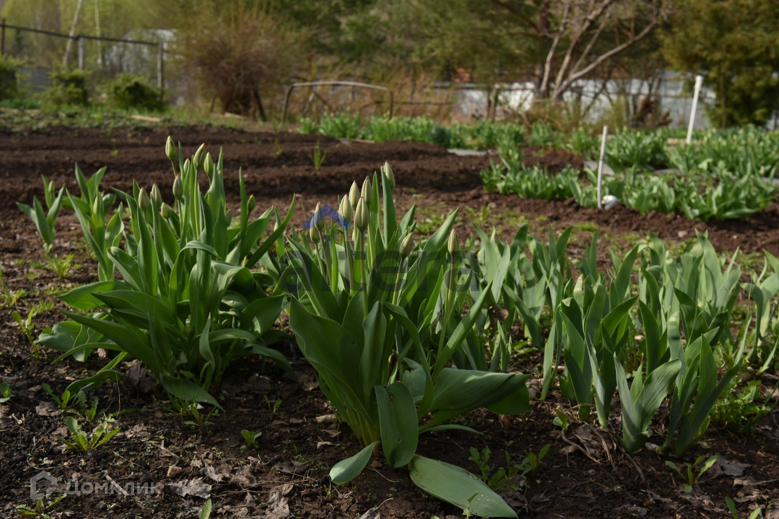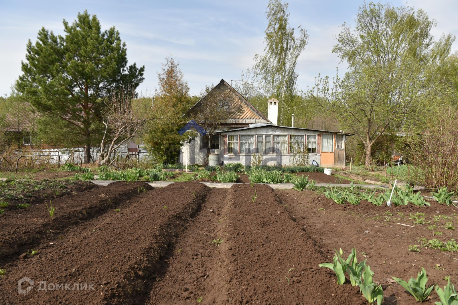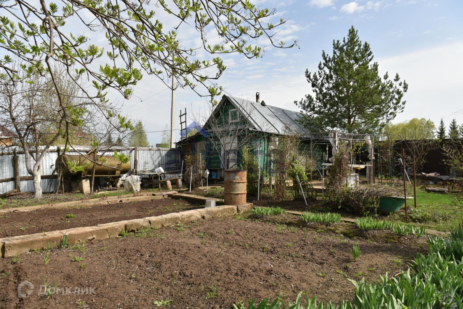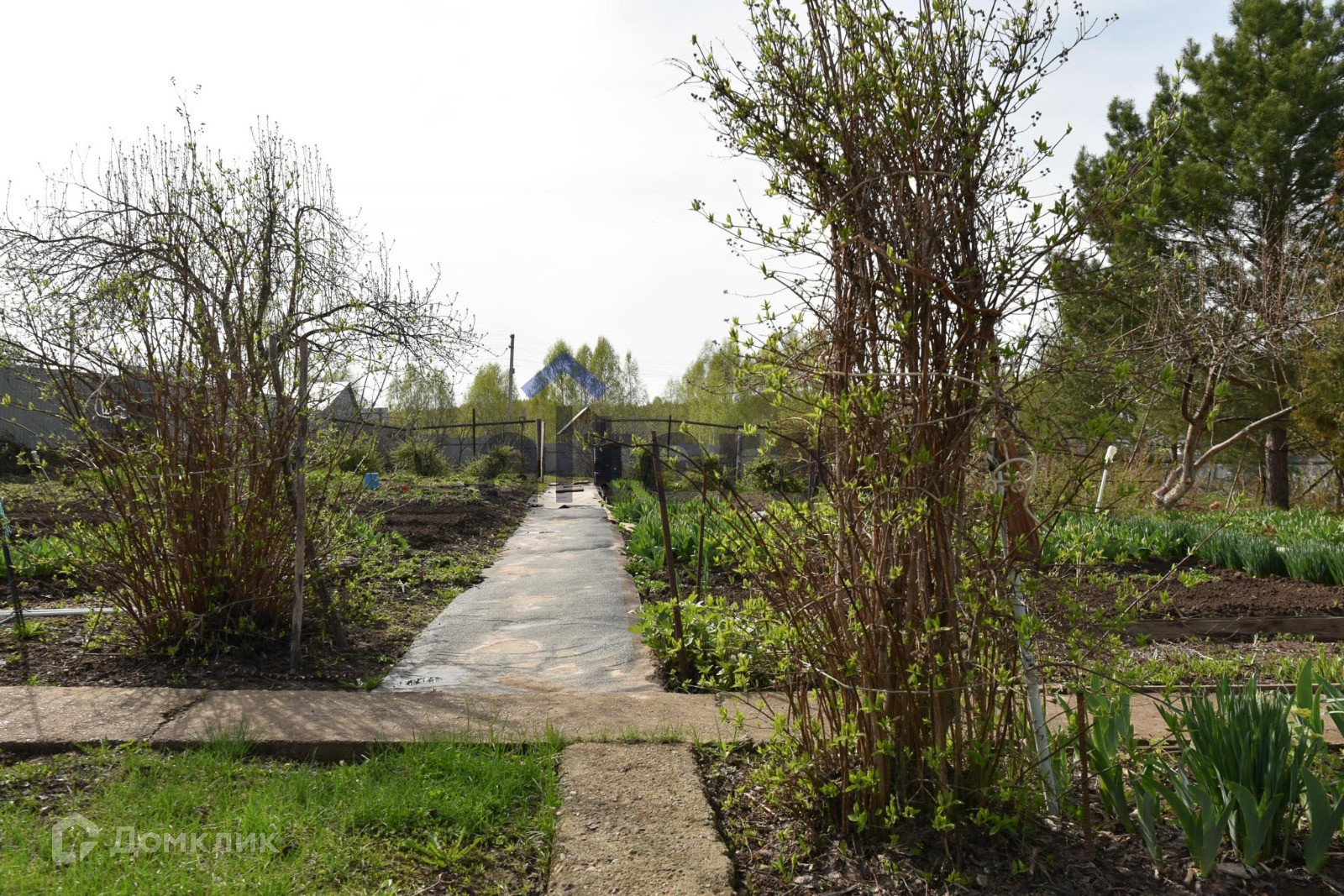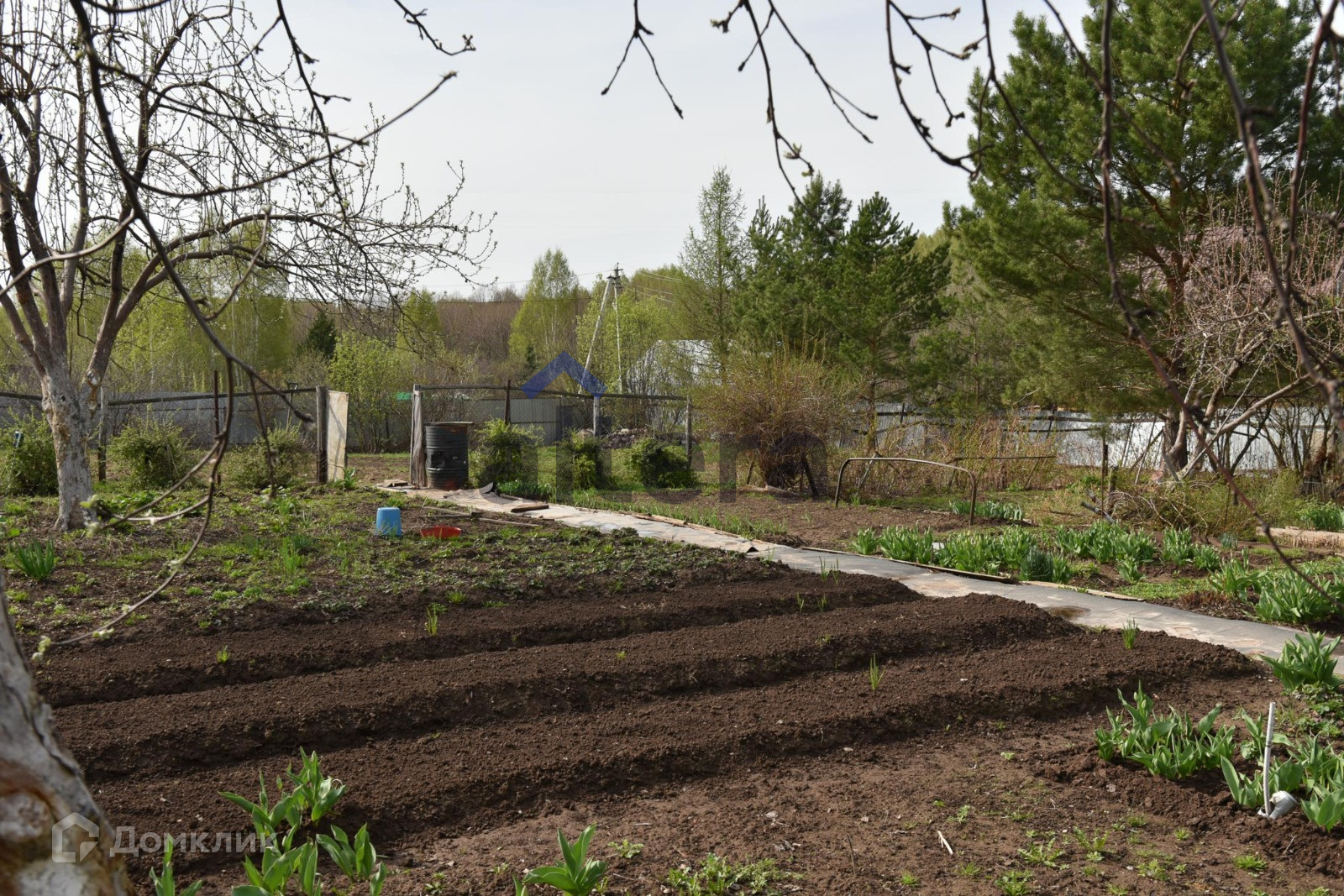 Участок ухоженный, есть ели, плодоносящие деревья и кустарники, цветы.
