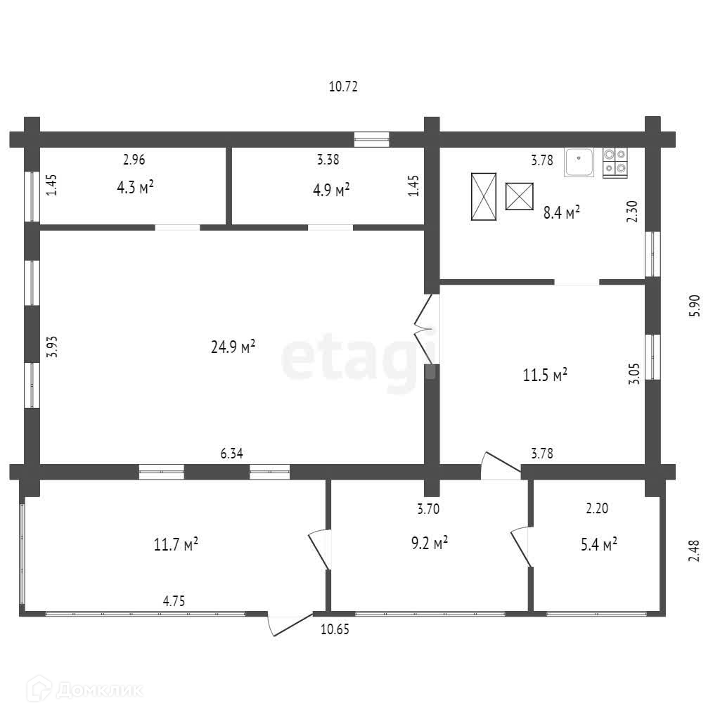 1-этажный дом, 80.3 м2, на продажу в деревне Канакаево, Школьная улица