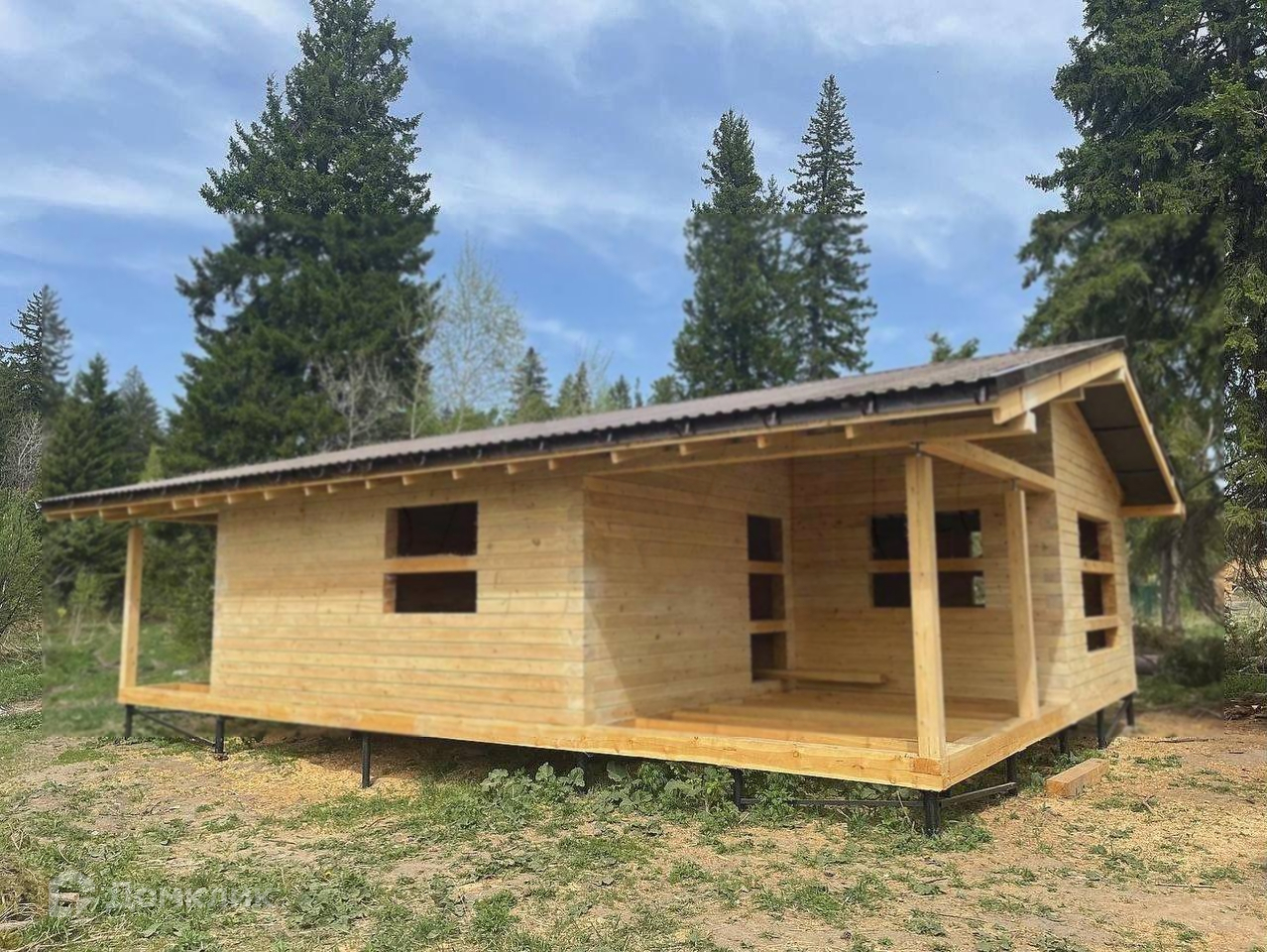 Дом-Баня из профилированного бруса 170х140мм. (зимний кедр)Общий размер 10,5х8,5м. веранда с высоким потолком и все остальные потолки так же по скатам. До коньковой балки 340см.Веранда - 2шт, коридор, большая комната отдыха, с/у, спальня, котельная с отдельным входом, парная и мойка. Из мойки отдельный выход на веранду с видом на лес.Фронтоны из бруса.Кровля - профлист - RAL 8017.Межвенцовый утеплитель - холлофайбер.Гидро-ветрозащита кровли (изоспан aq proff) Дополнительна проклеена скотчем профессиональным ml proff.Капельник конденсата.Вентиляционный зазор кровлиВодосточная системаШирокие ветровые планки.После сборки шлифовка сруба (выборочно, там где необходимо)Центральные коммуникации: вода (через прокол), свет, газ в радиусе 200 м.Окна энергоемкие с UV -обработкой, 42 мм толщина стеклопакета, оплачены, в процессе изготовления, будут установлены в ближайшее время.