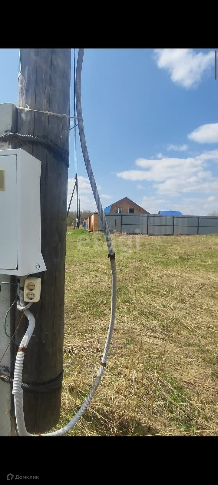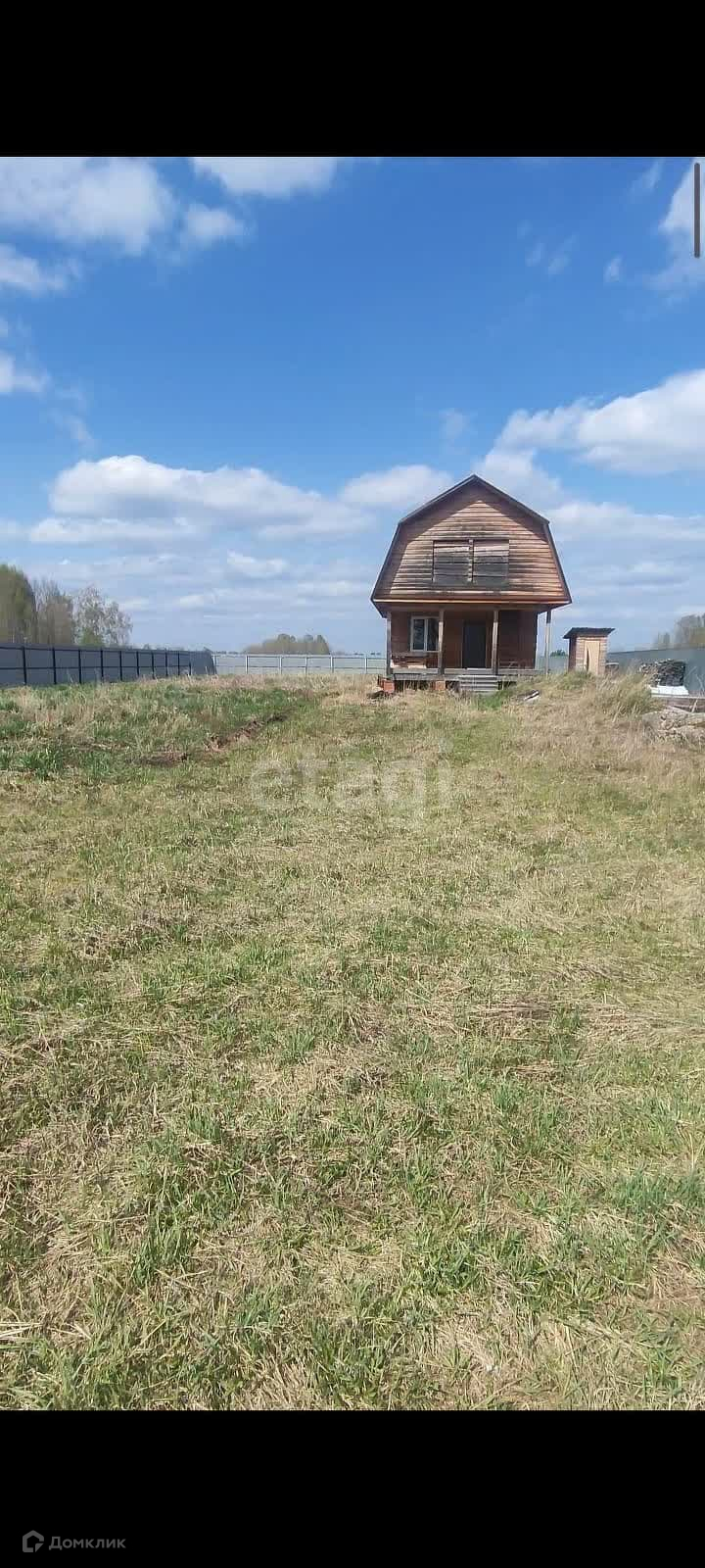 Дом с участком расположен на окраине посёлка, площадь участка составляет 15 соток, дом (88 квадратных метров). Участок находится около красивого поля.