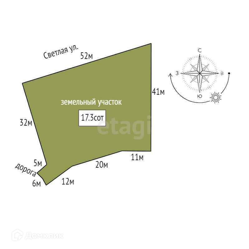 Площадь участка 17.3 сот.