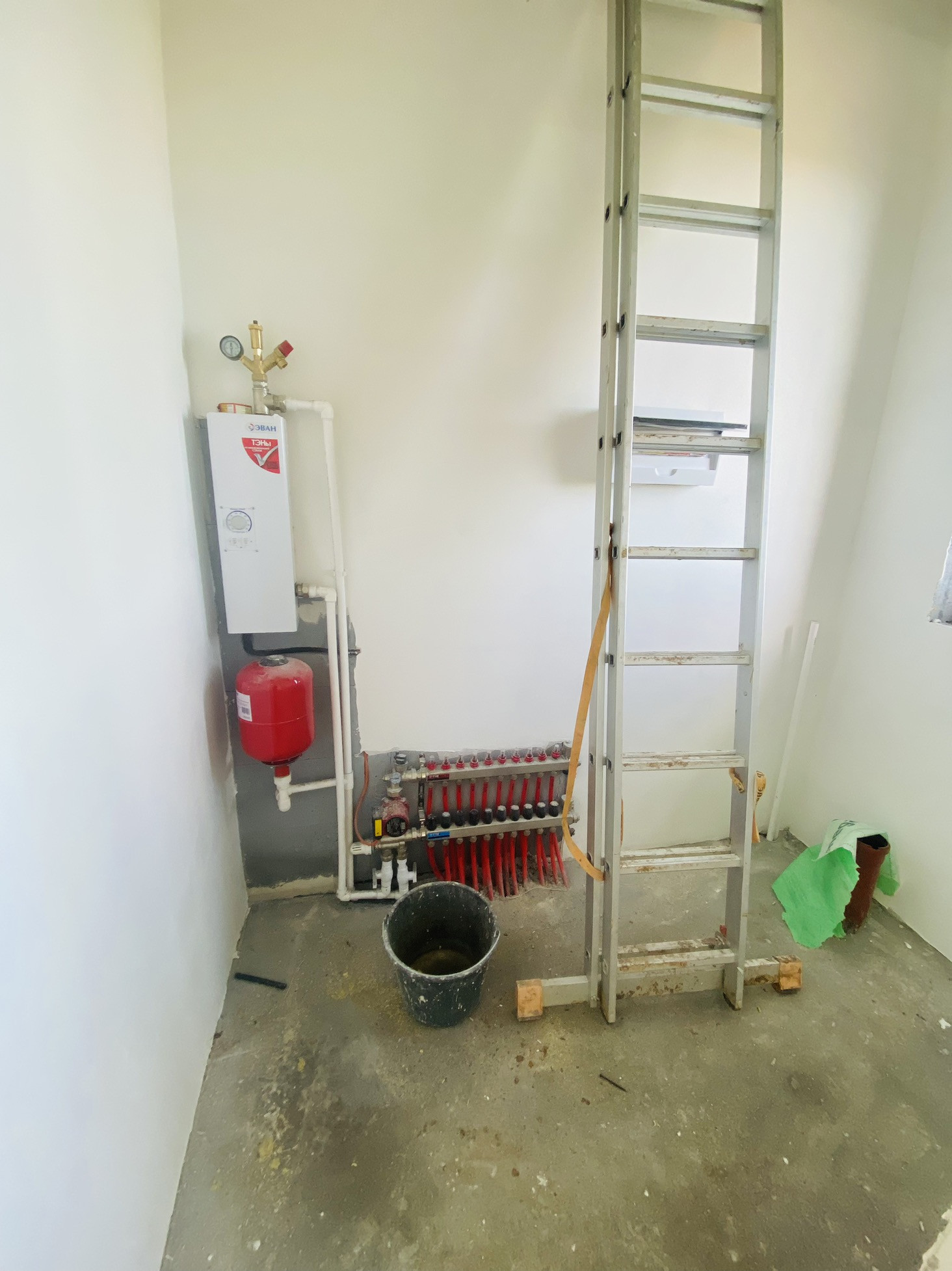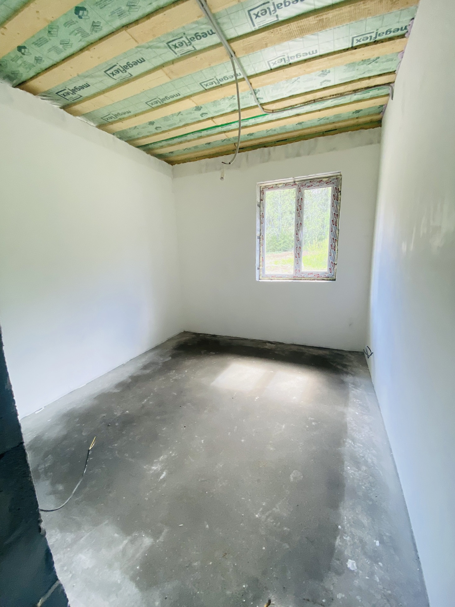 -стены выровнены оштукатурены, на полу бетонная стяжка (уже можно клеить обои на ваш вкус и добить напольной покрытие)
