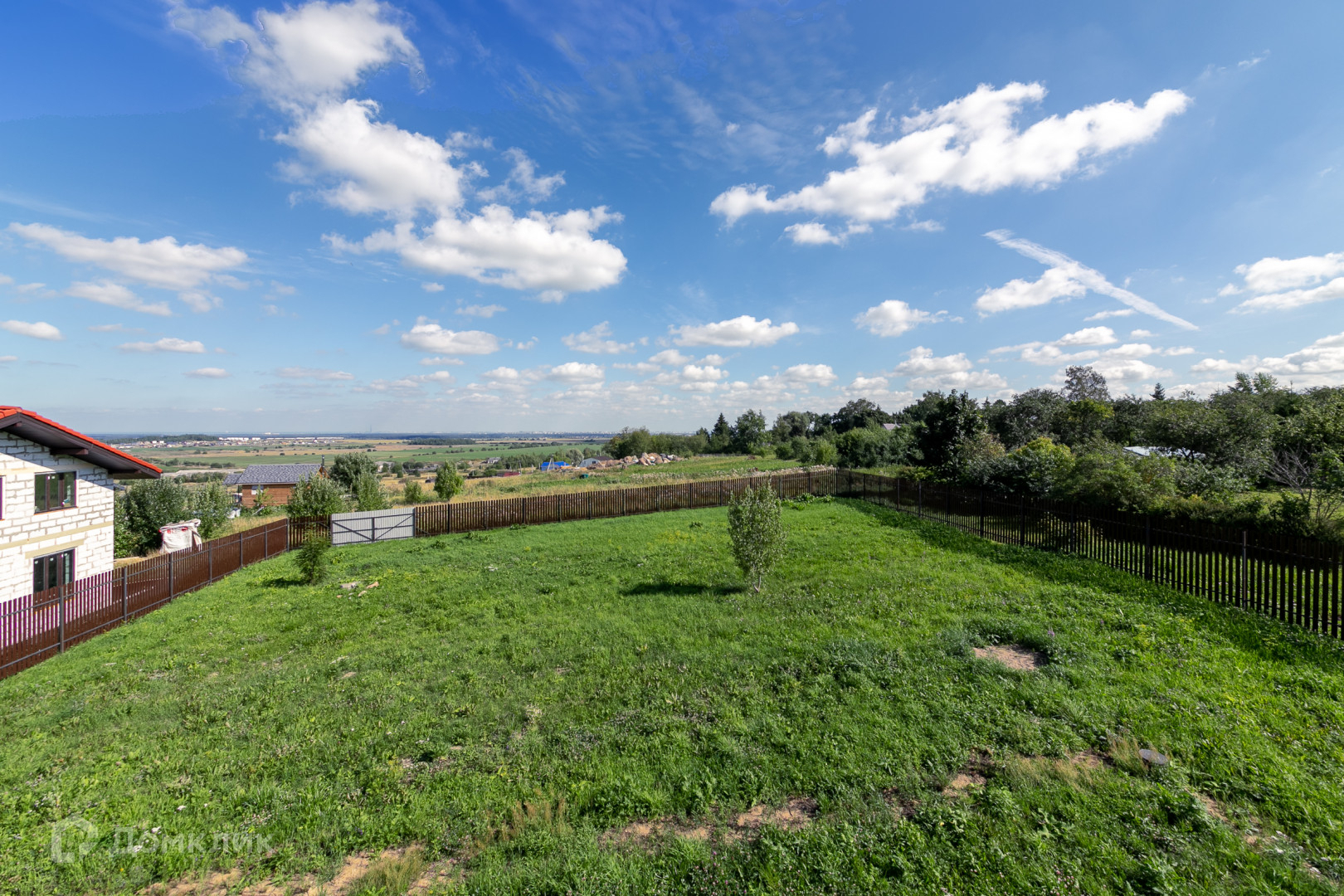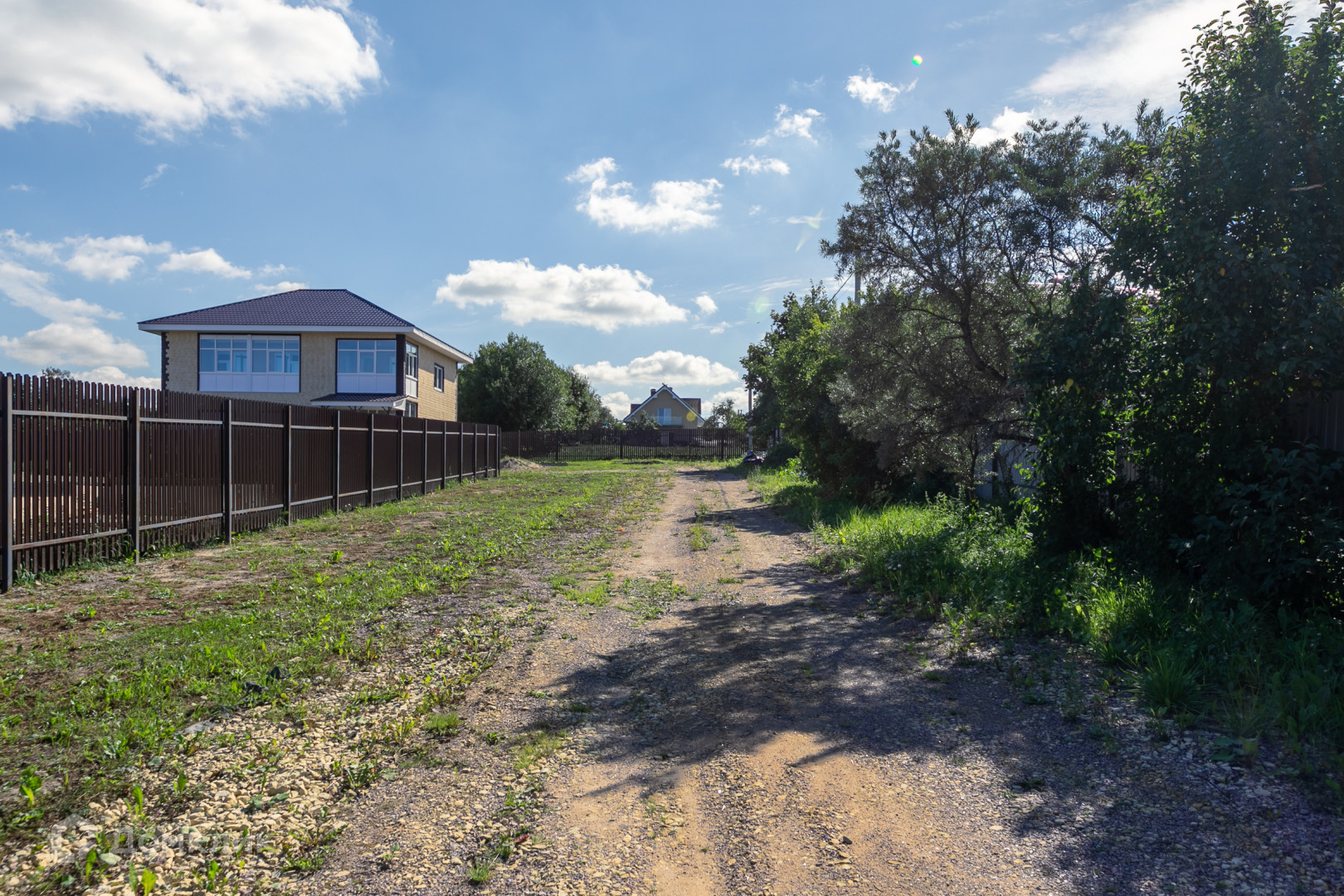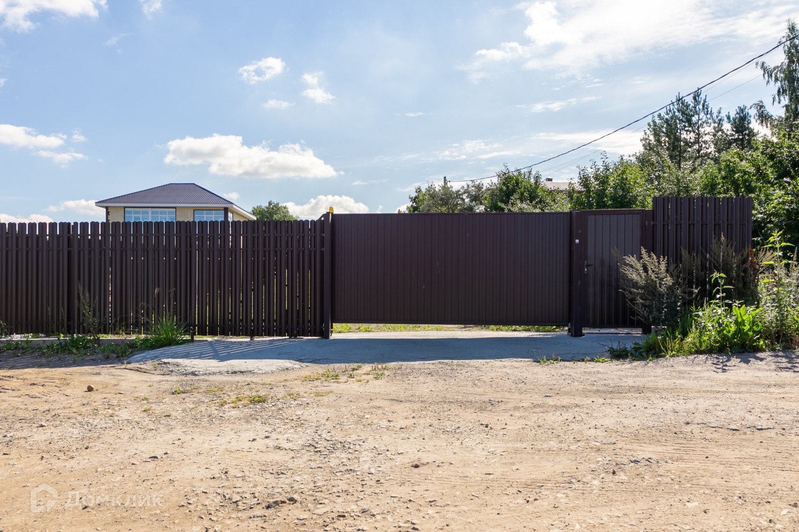 15 соток имеют правильную форму и 8 соток для въезда на участок, ограда из металлического евроштакетника по периметру всего участка. Участок ровный, без насаждений. Заезд через откатные автоматические ворота.