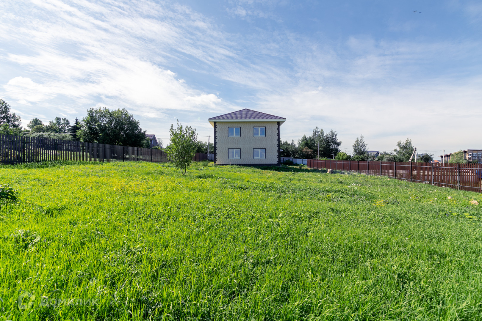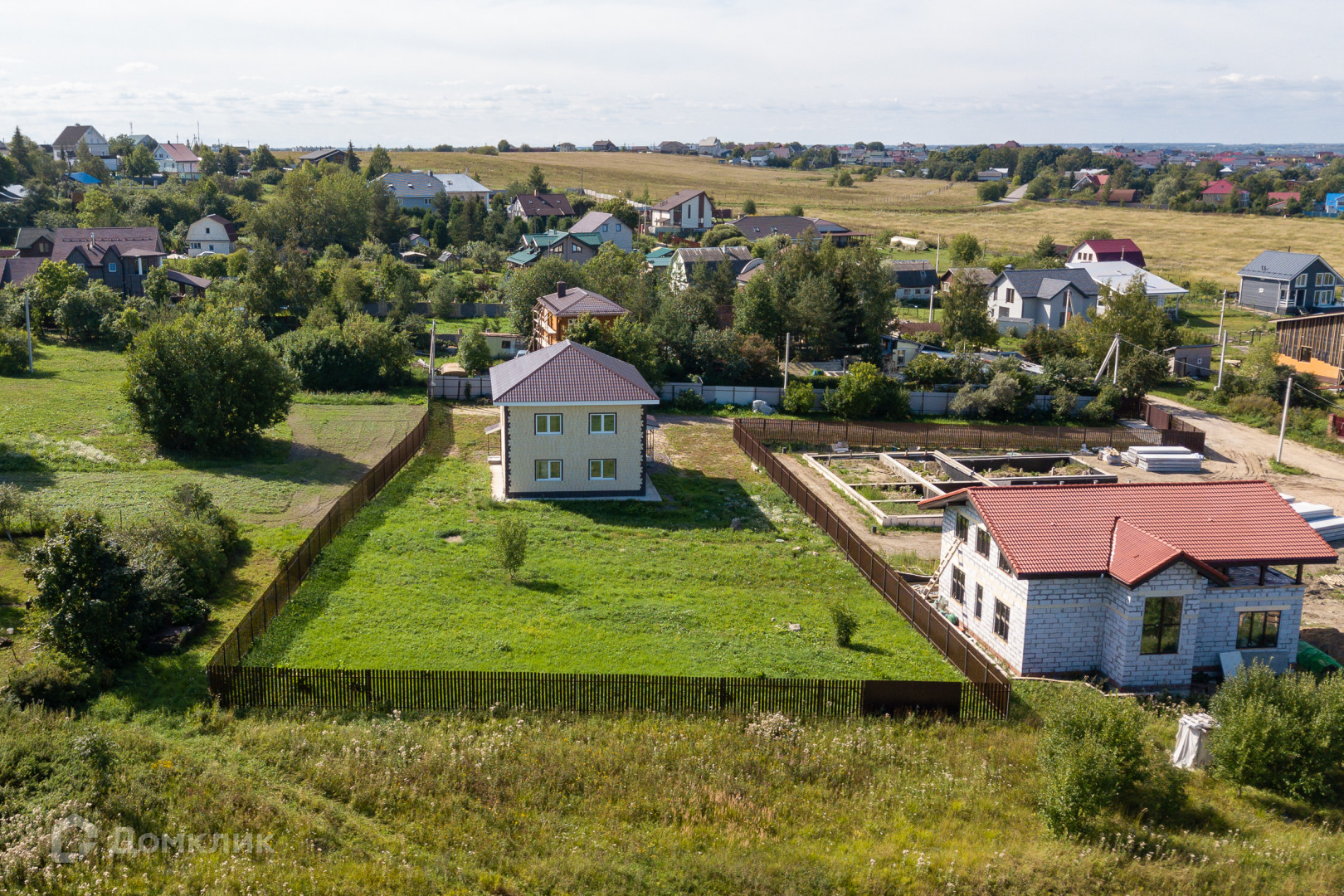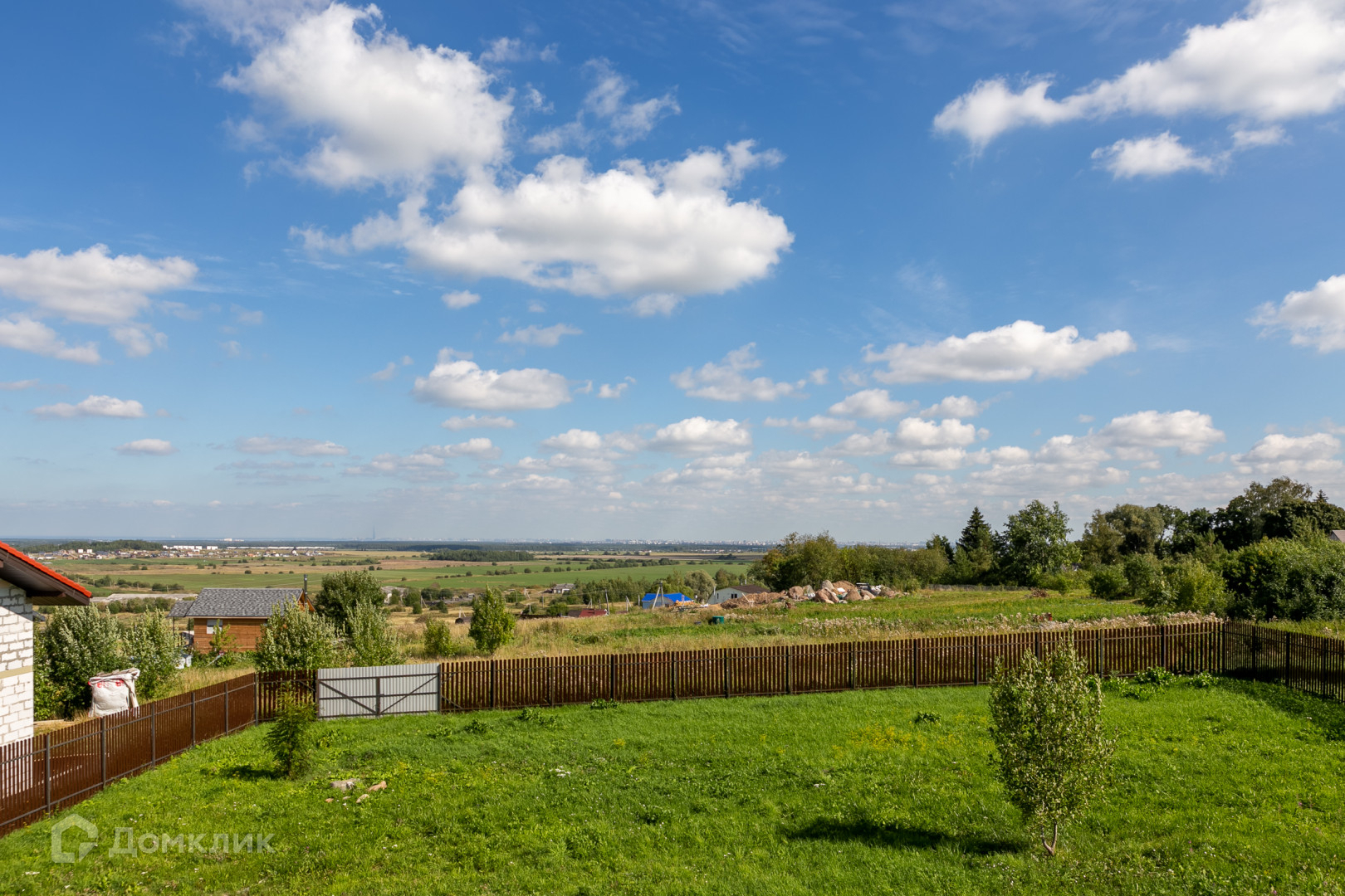 15 соток имеют правильную форму и 8 соток для въезда на участок, ограда из металлического евроштакетника по периметру всего участка. Участок ровный, без насаждений. Заезд через откатные автоматические ворота.