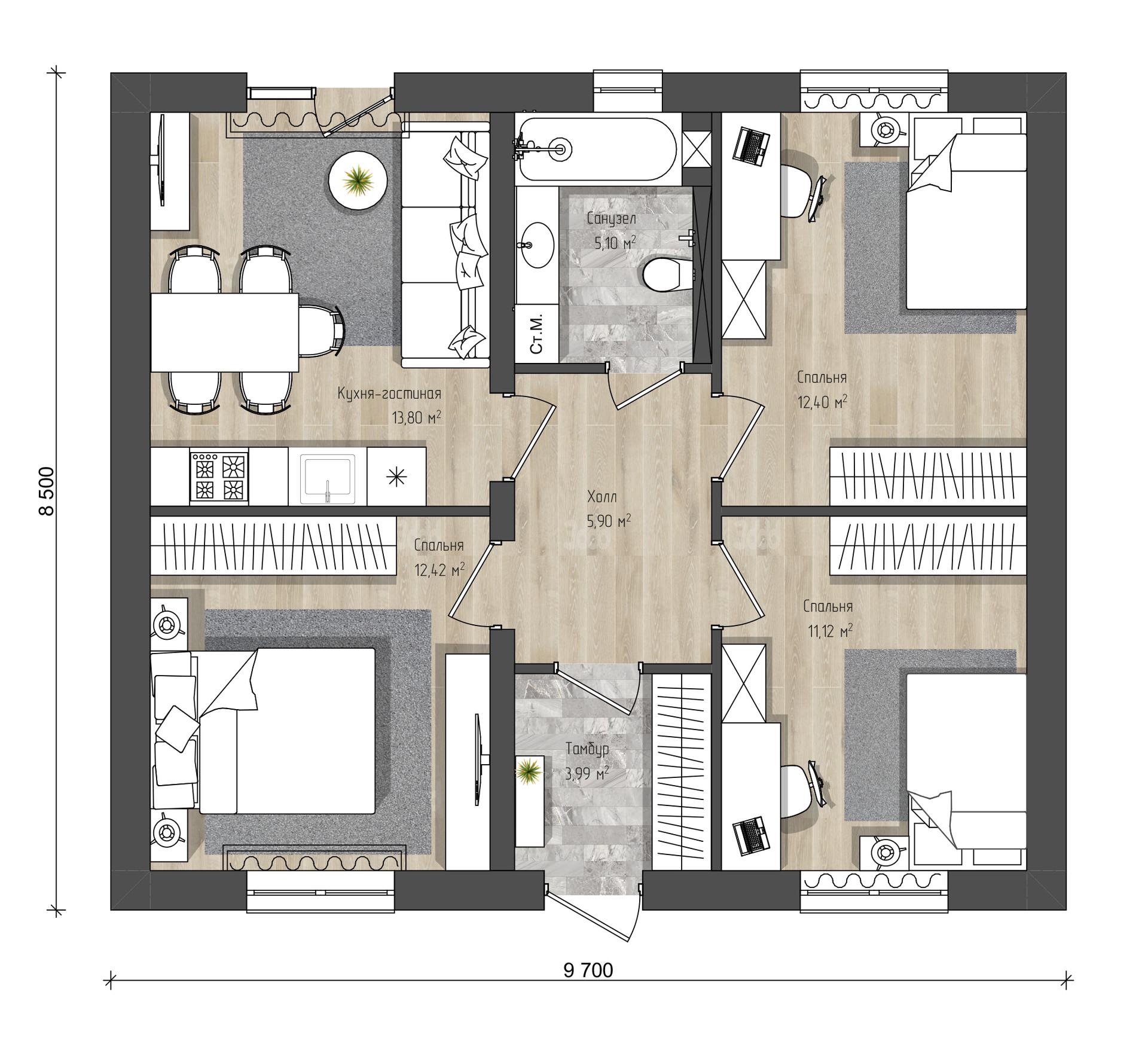 Общая площадь 70 м2