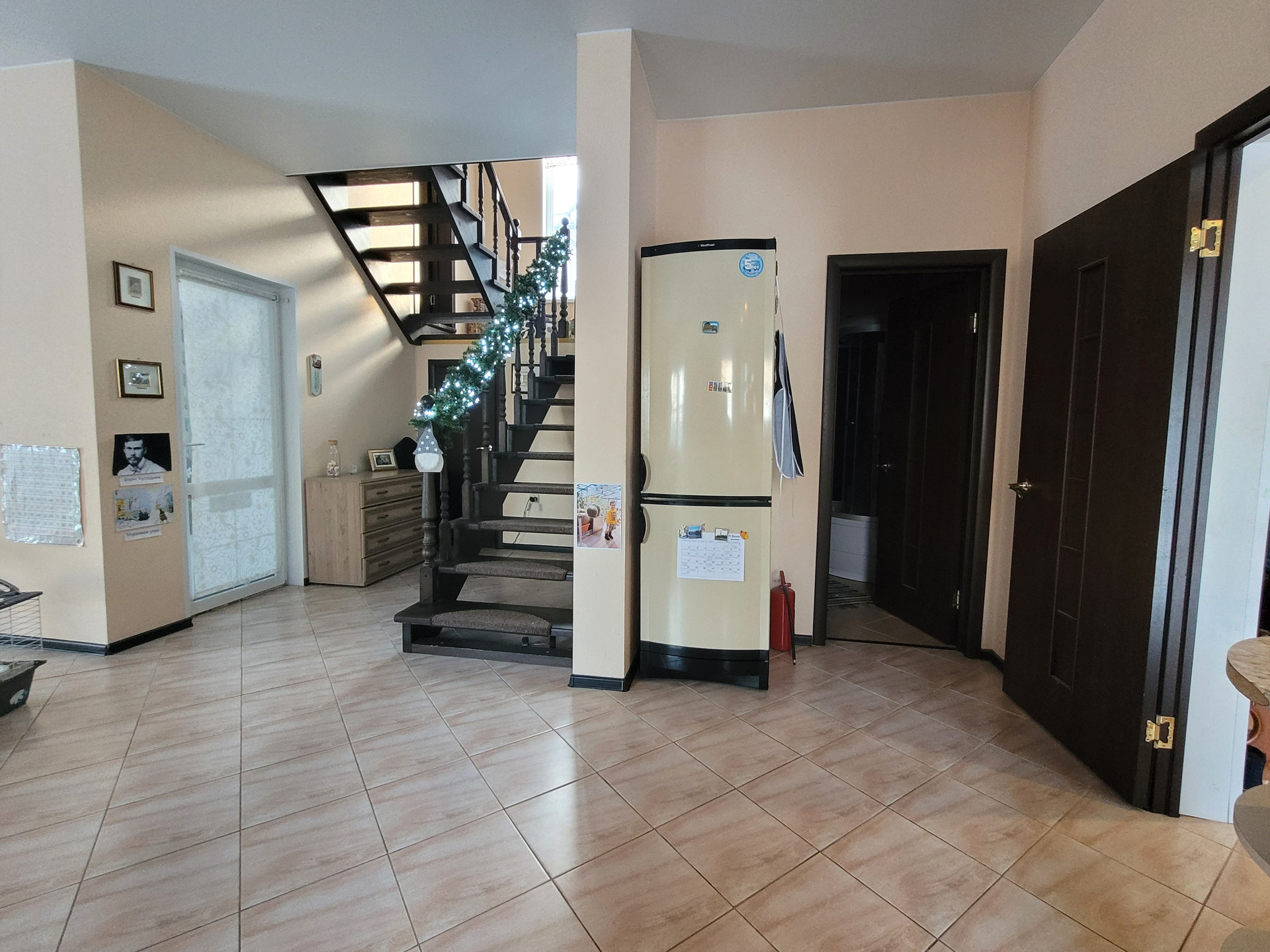 В доме:, два сан узла (первый этаж- просторная душевая кабина, второй-ванна), 4 спальни, кабинет, большая кухня-гостиная, кухонный гарнитур со встроенной техникой. Стоит система очистки воды. Канализация- септик, работающий автоматически (установлен новый мощный мотор), двухконтурный газовый котел, на воду и отопление. Во всем доме теплый пол, радиаторов нет. Вода подведена из скважины (на несколько домов).