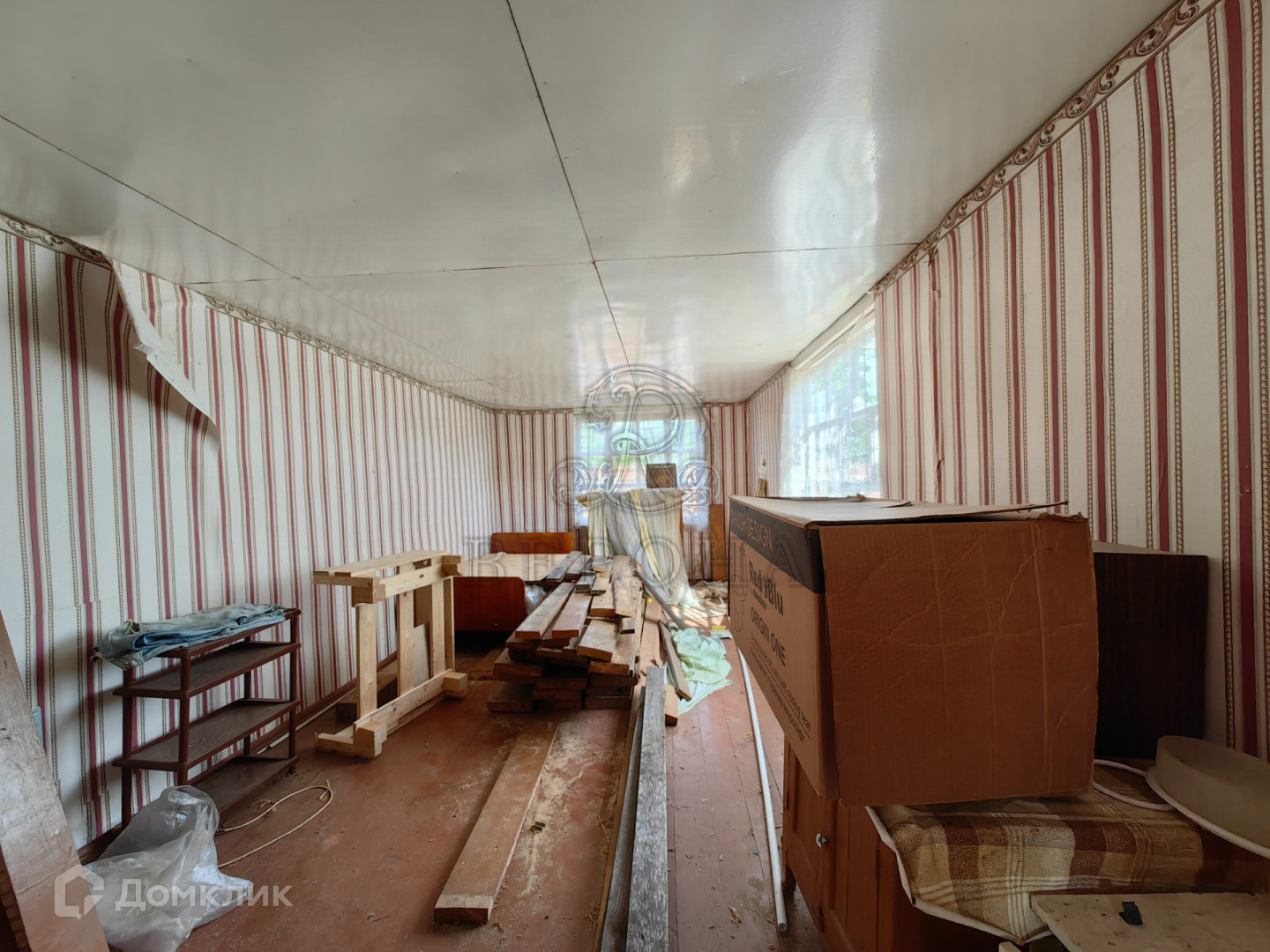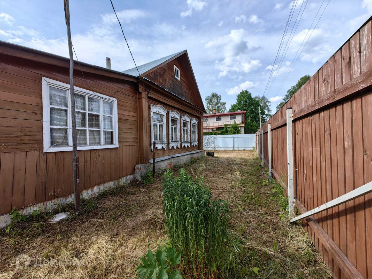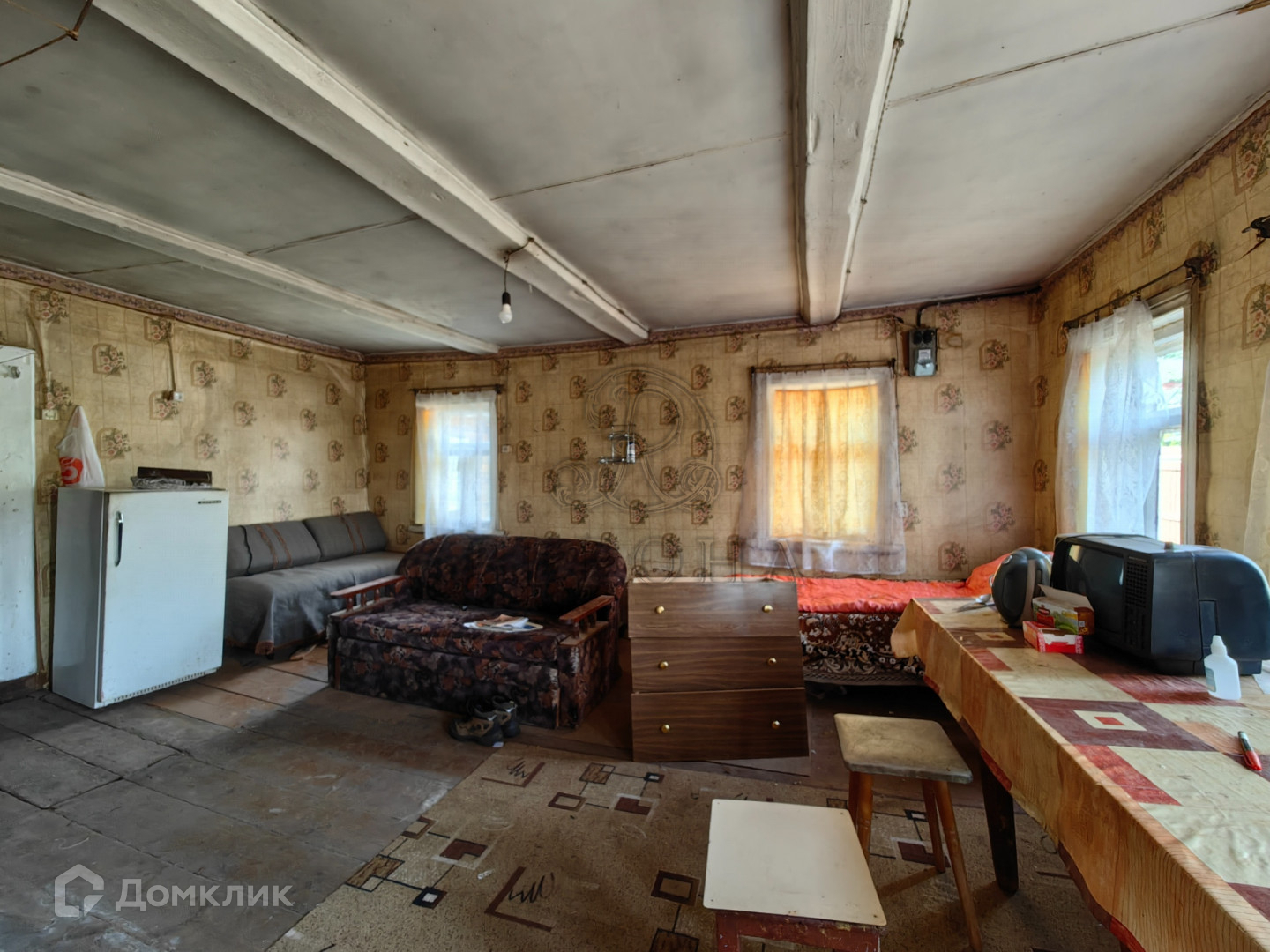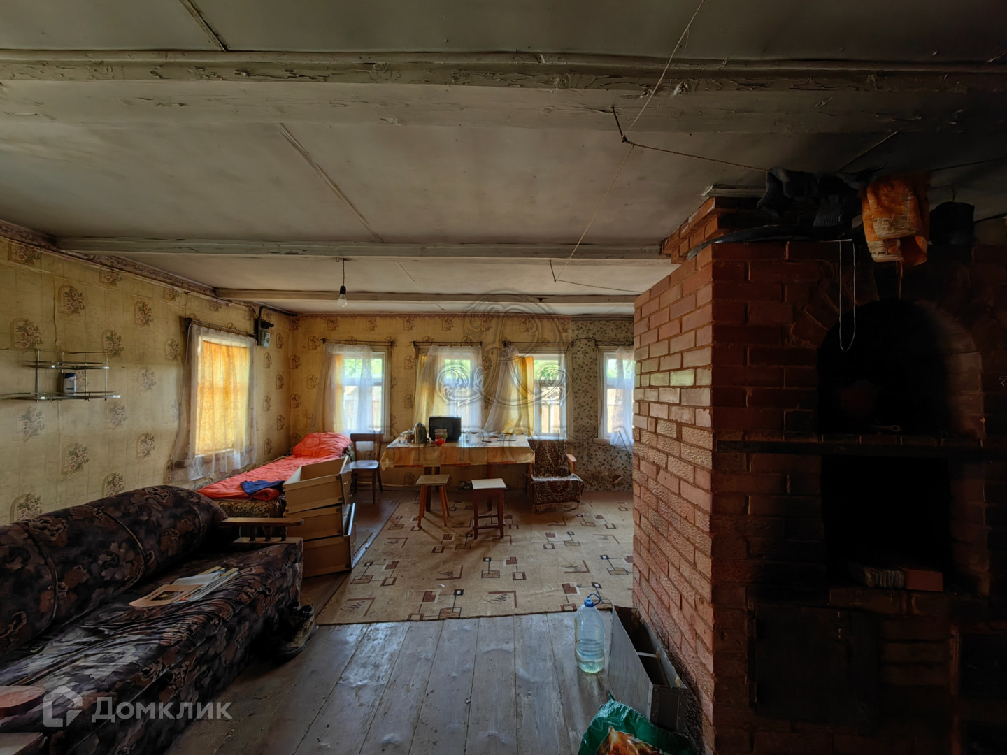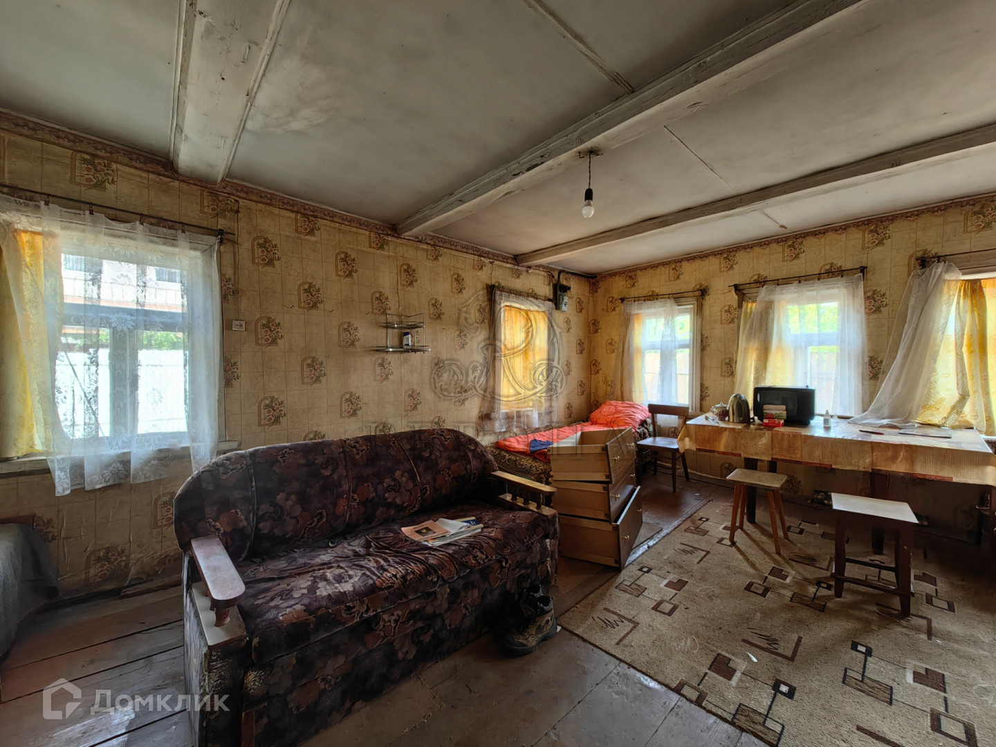 Одноэтажный дом, построенный из бревна на ленточном фундаменте. Дом с печным отоплением, три комнаты. Крыша покрыта оцинкованным железом. Дом площадью почти 60 кв.м., по документам зарегистрирован как 30 кв.м.