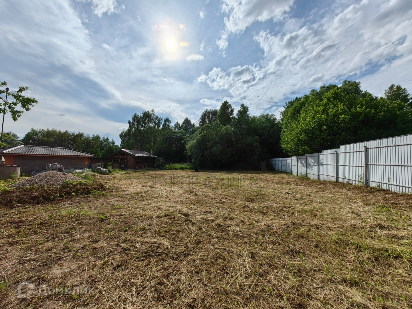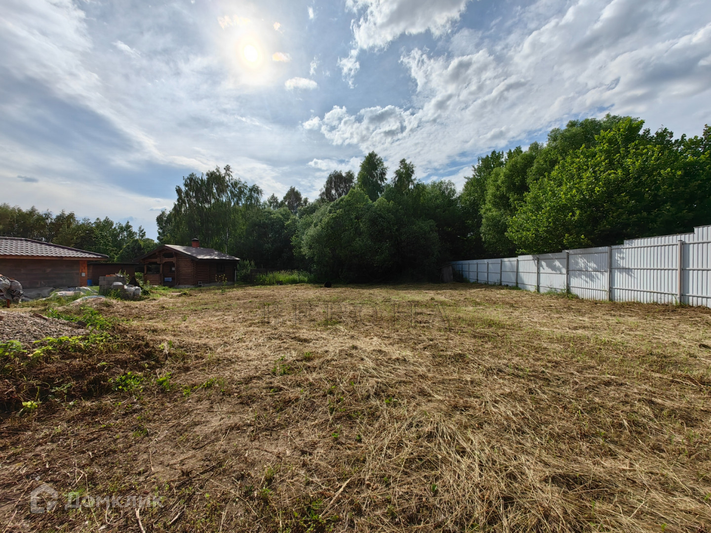 Участок 13 соток, правильной формы, сухой и ровный, огороженный забором. Имеются ворота для въезда автомобиля на территорию участка.