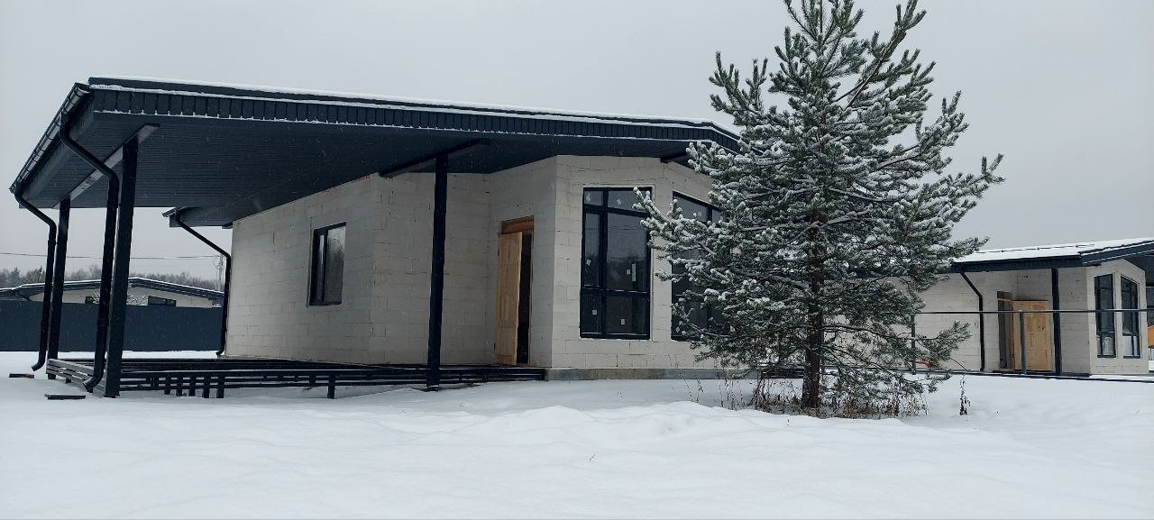 Кратко о нашем комплексном решении: УШП, блок D400, Кликфальц GrandLine Pro, Софит металлический Drap TX, отделка White box, инженерные системы готовы, алюминиевые входные двери, ламинированные пластиковые окна, забор, калитка, автоматические ворота, навес, парковка на 2 машины.