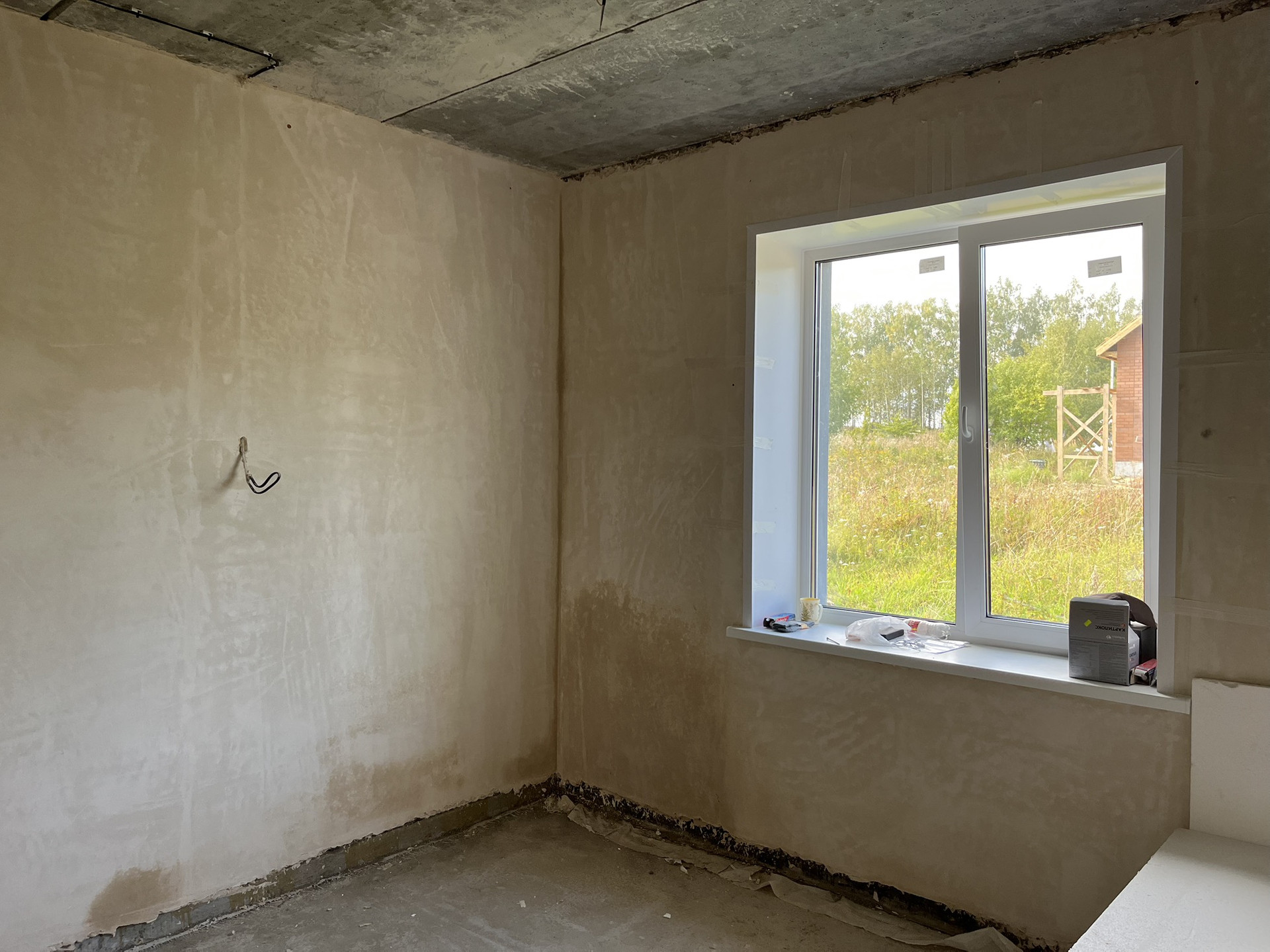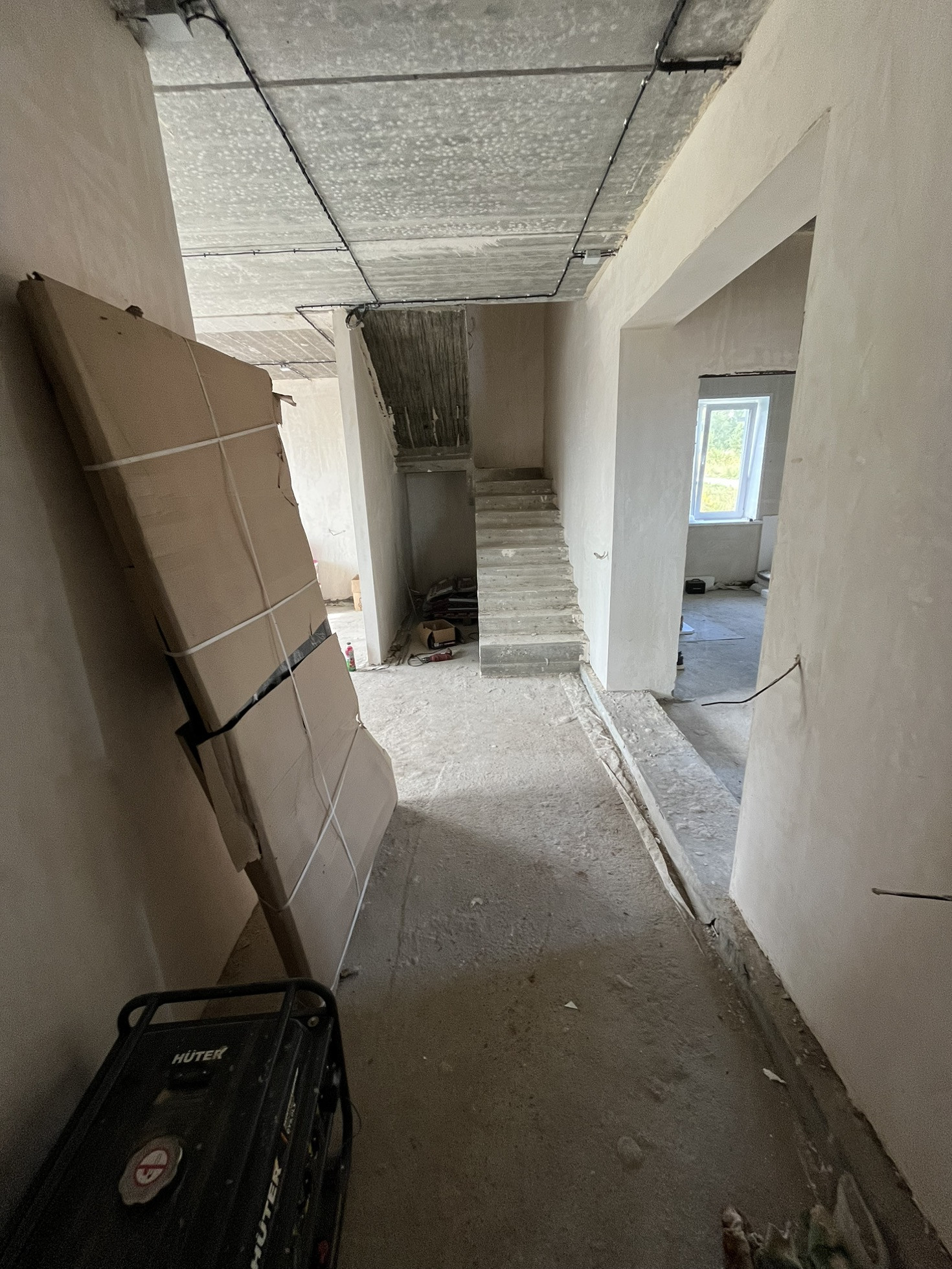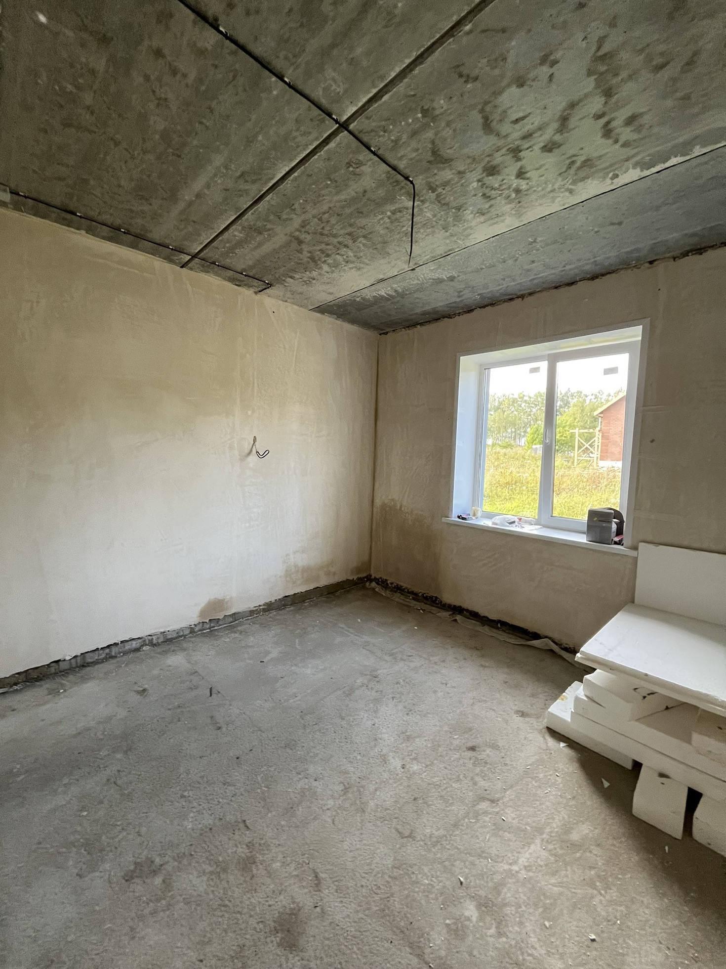 В доме выполнена разводка электропроводки, оштукатурены стены, межэтажное перекрытие Ж/б плиты.