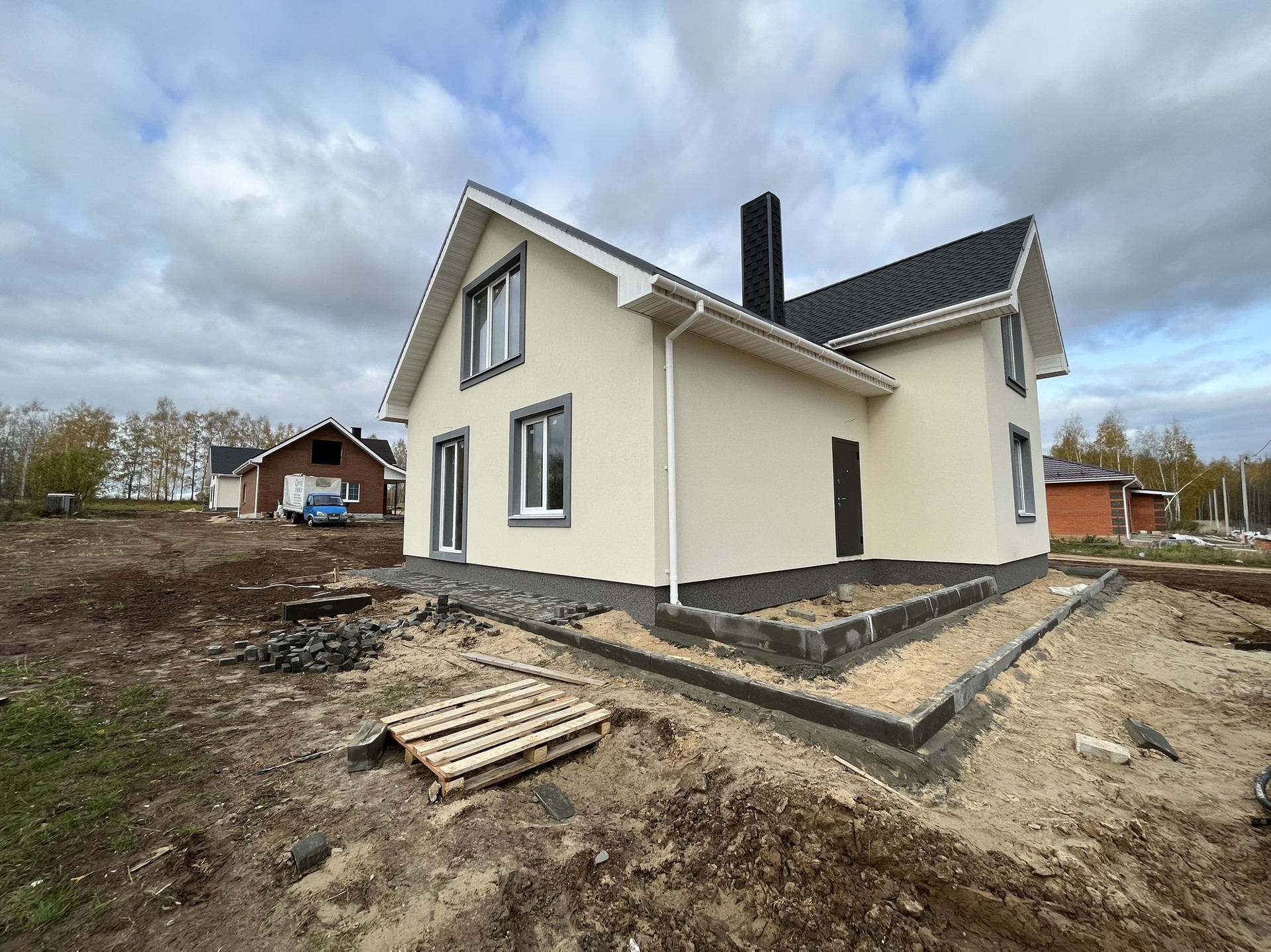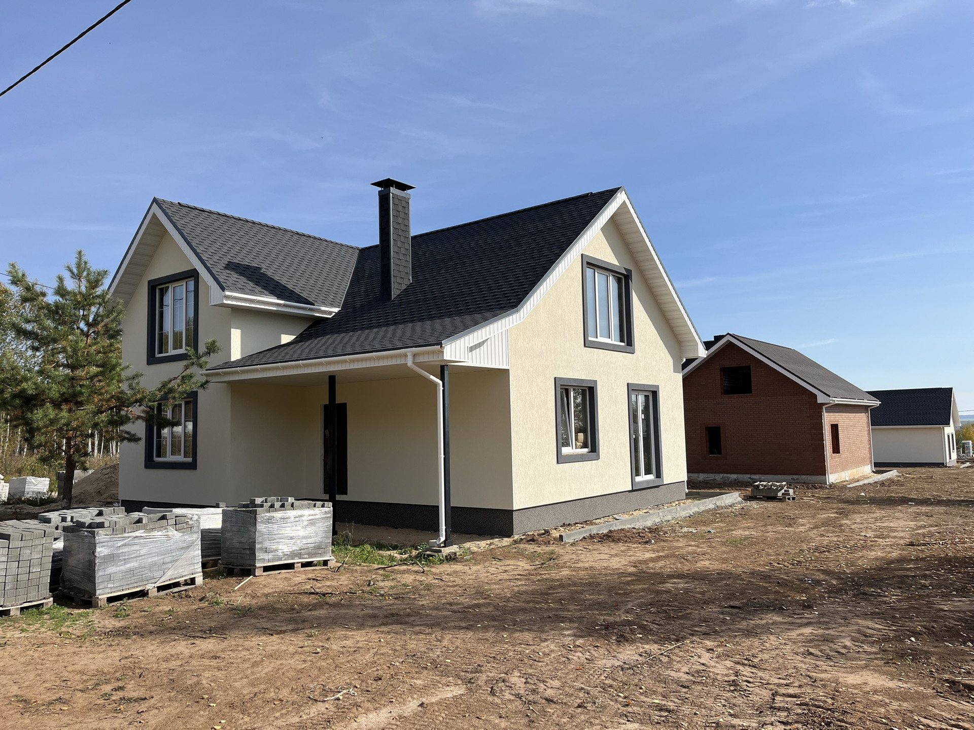 Облицовка домов в фасадной штукатурке. участок 8 соток.