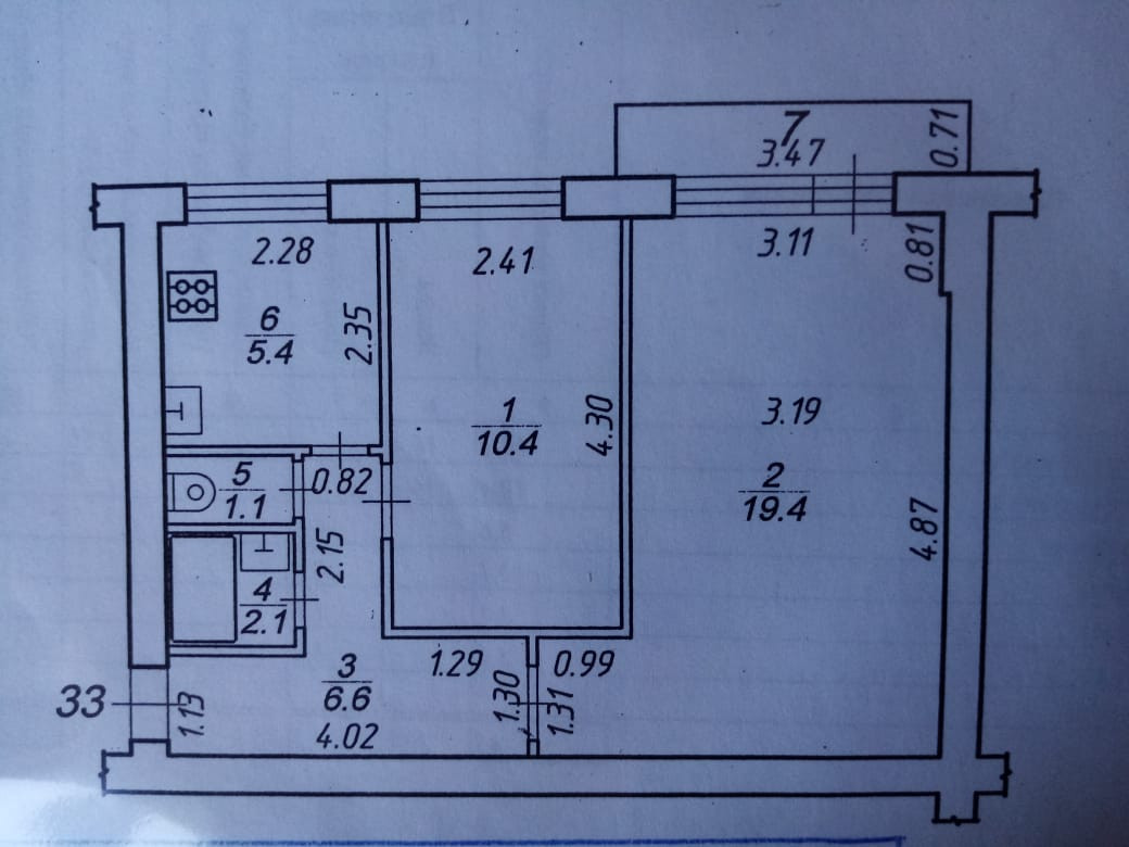 Балкон, лоджия 1 балкон