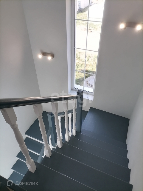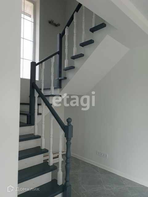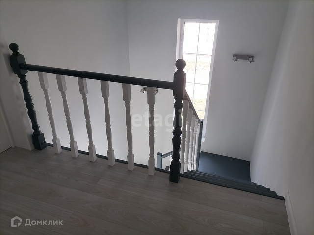 Лестница отделана деревом.