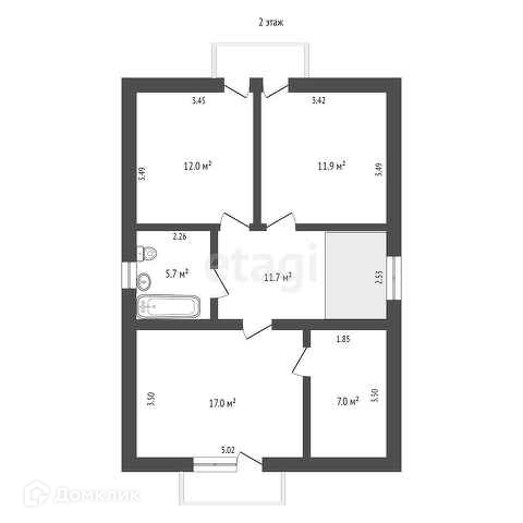 Две комнаты по 12 м2 и комната 17 м2 + гардероб 7 м2. (в комнате высота потолка 5 метров).
