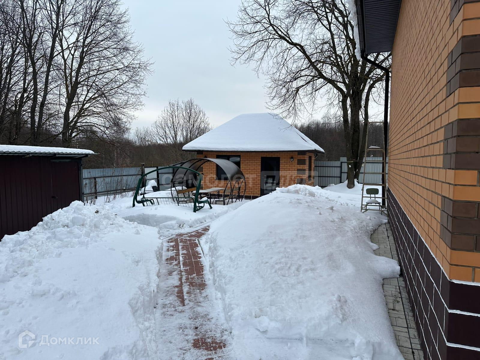 Рядом открытая беседка, мангальная зона, детский игровой домик.