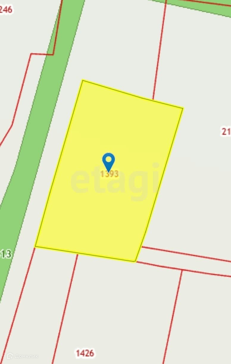Участок пригоден для строительства дома и подсобных сооружений. Ширина 13 метров, длина 21 метр.