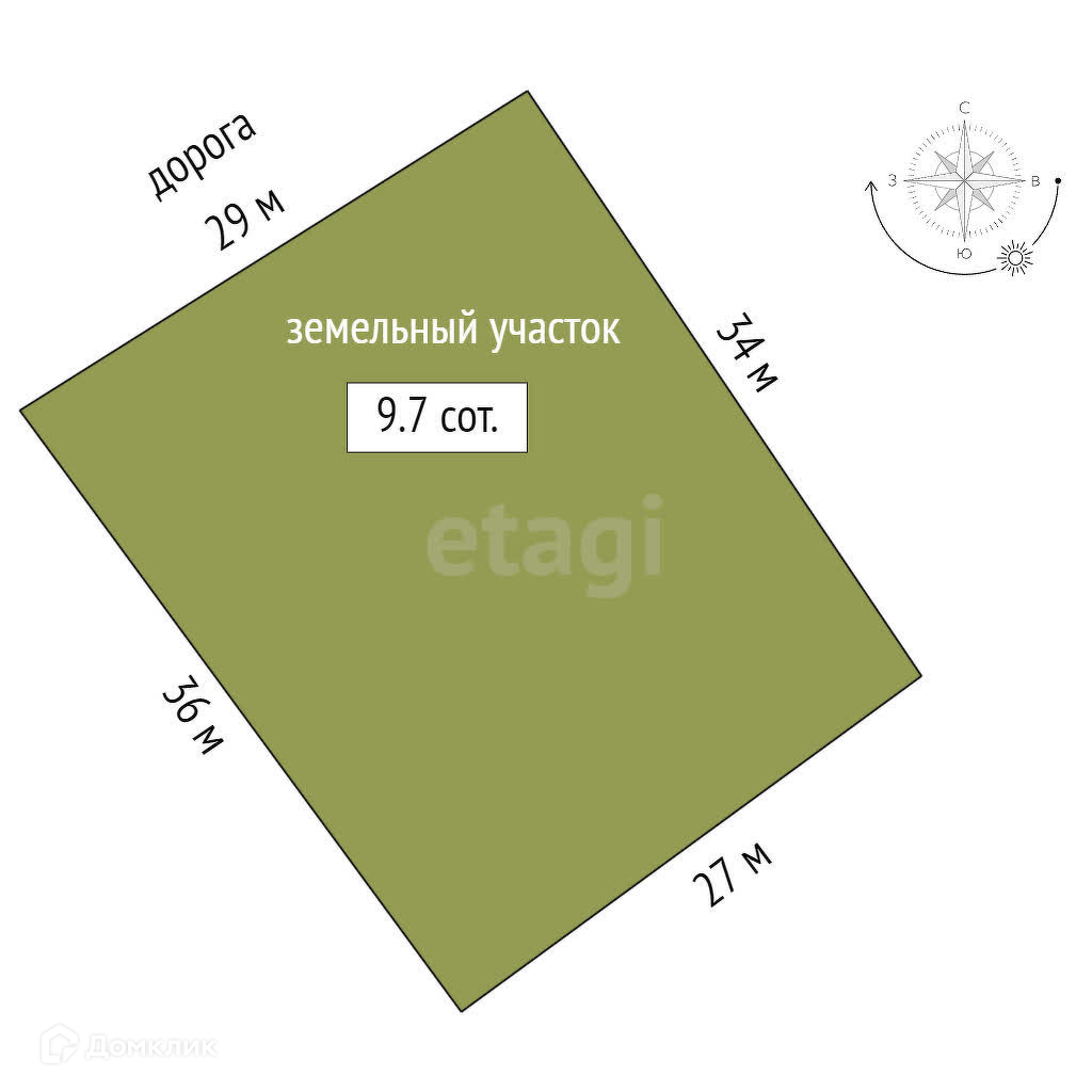 Площадь участка 9.7 сот.