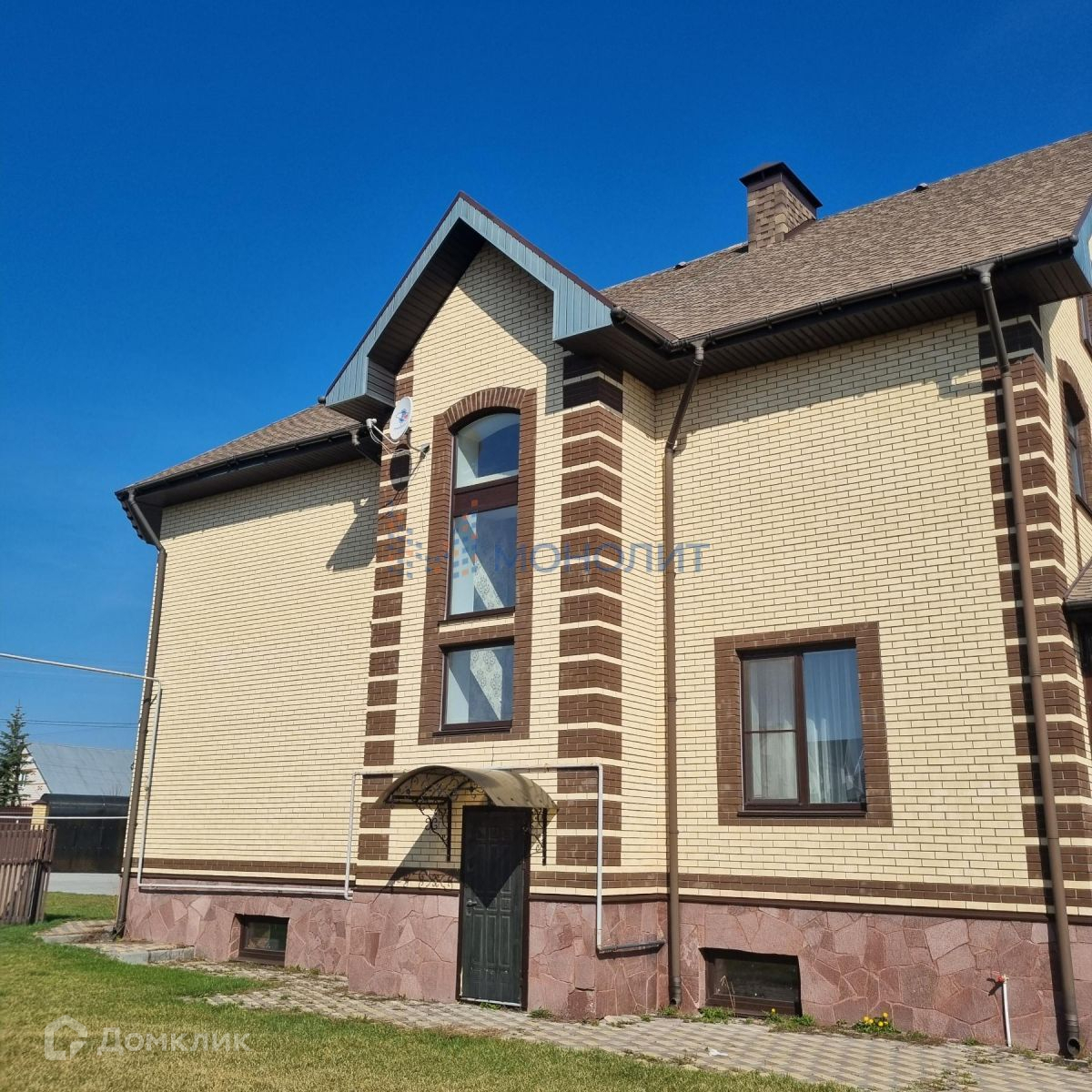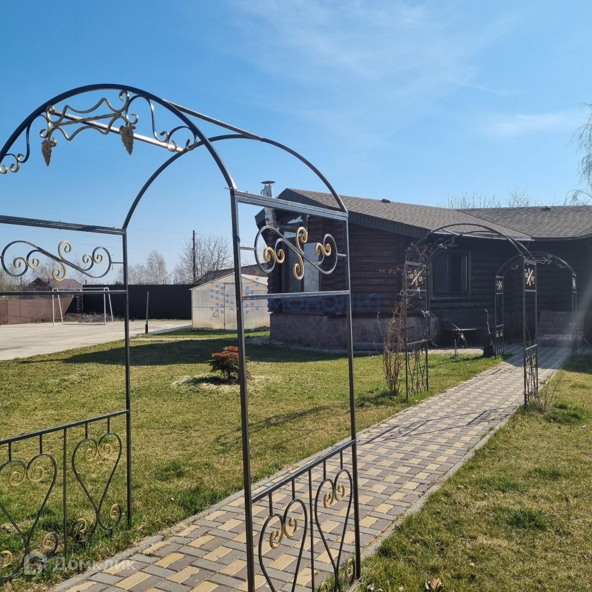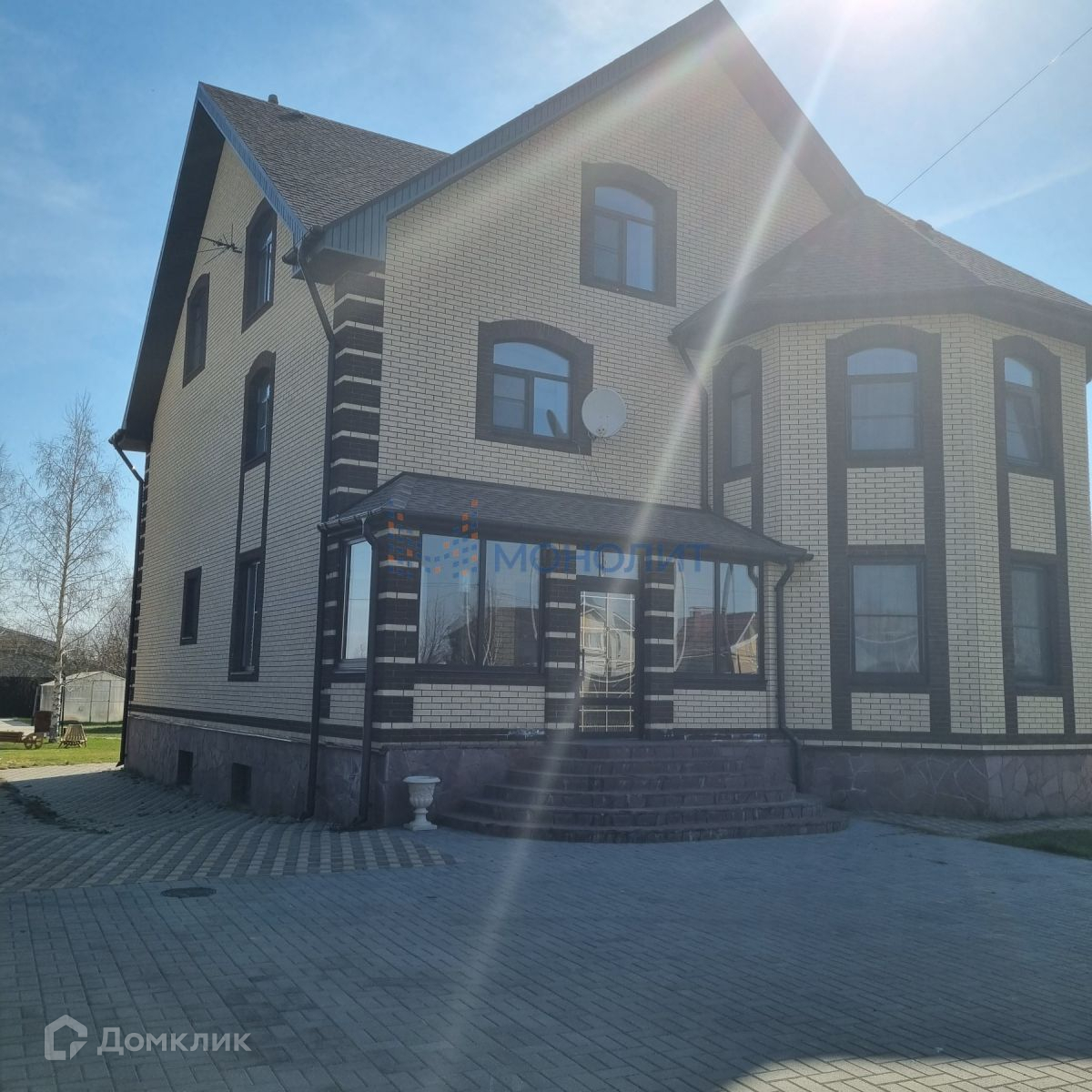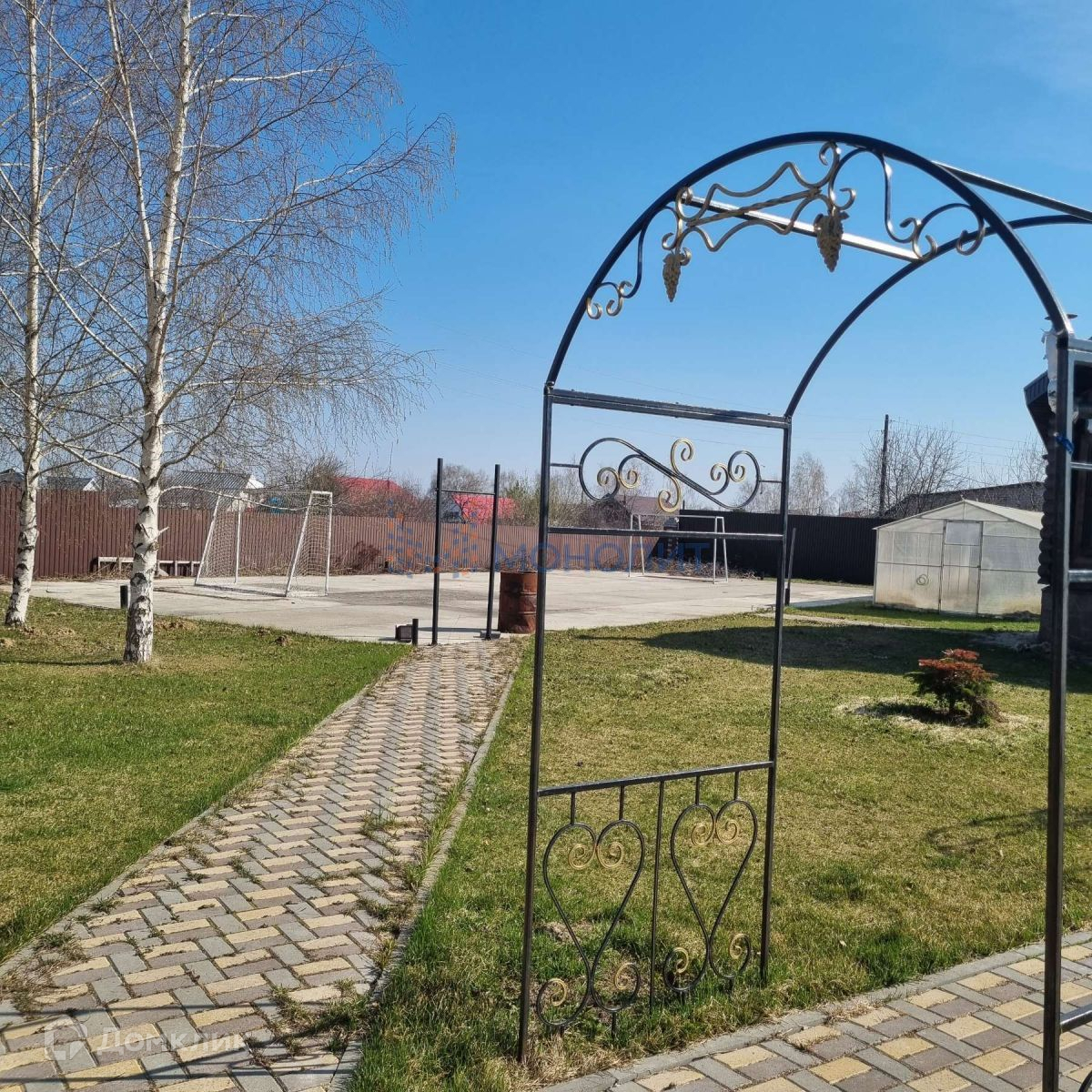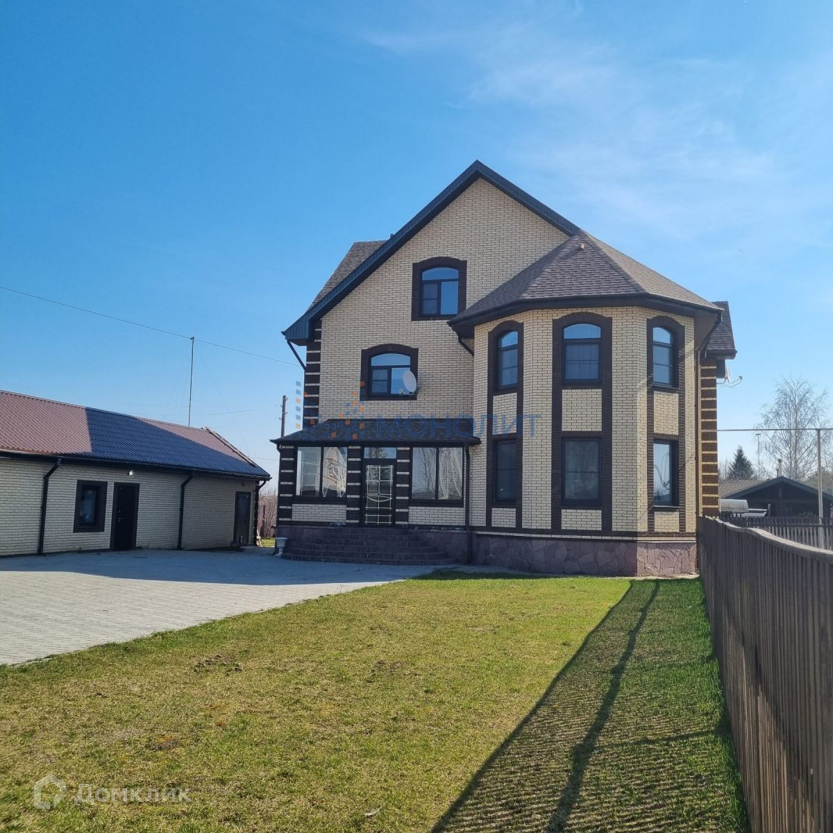 Территория дома огорожена, полностью ухожена, территория оборудована зоной для отдыха гостей, открытой бетонной площадкой для тениса 12*24, банным комплексом с бассейном 7*9, садом, гаражом на 4 автомобиля, ворота открываются с пульта. На территории полностью обустроенный большой гостевой дом.