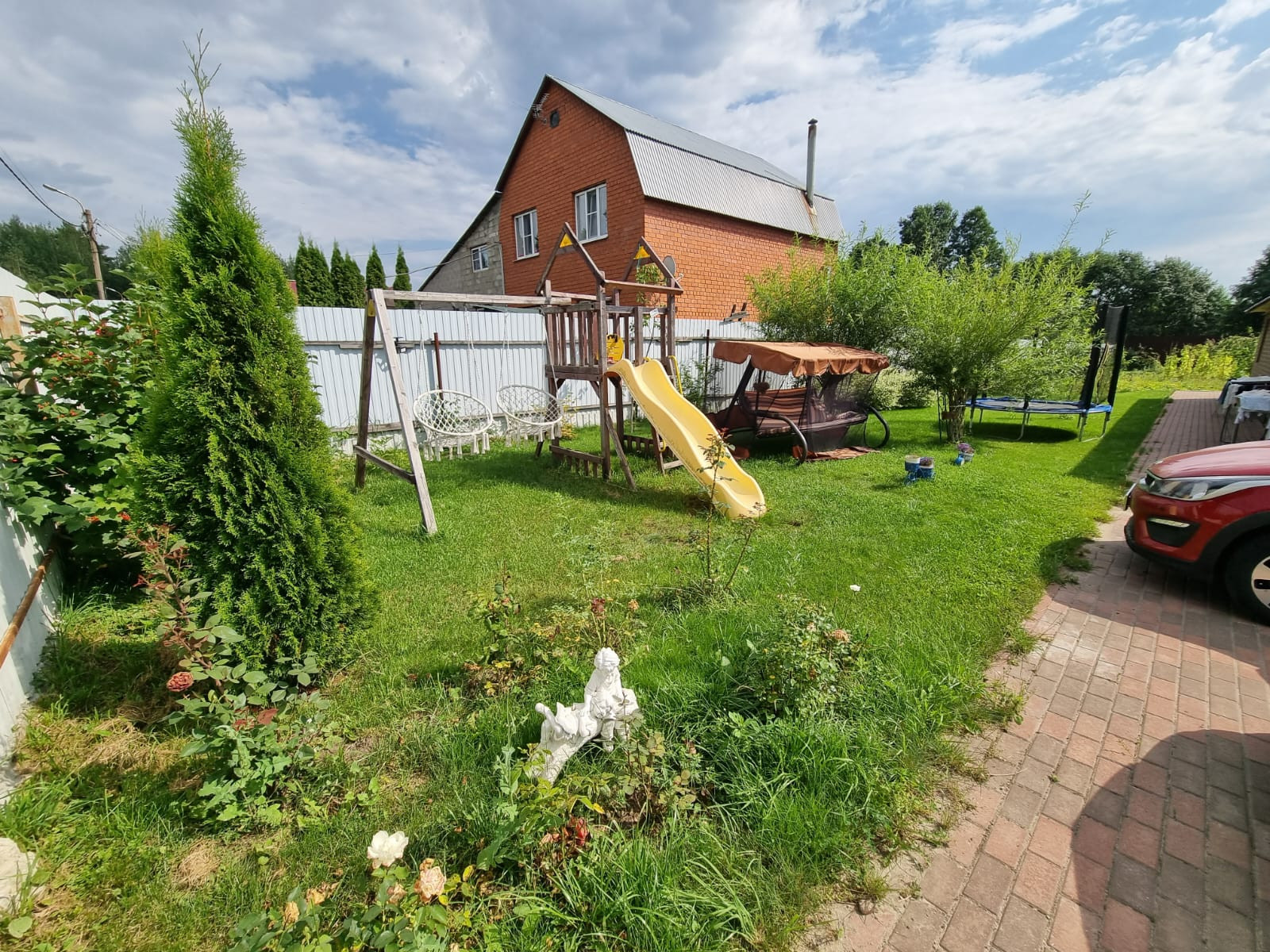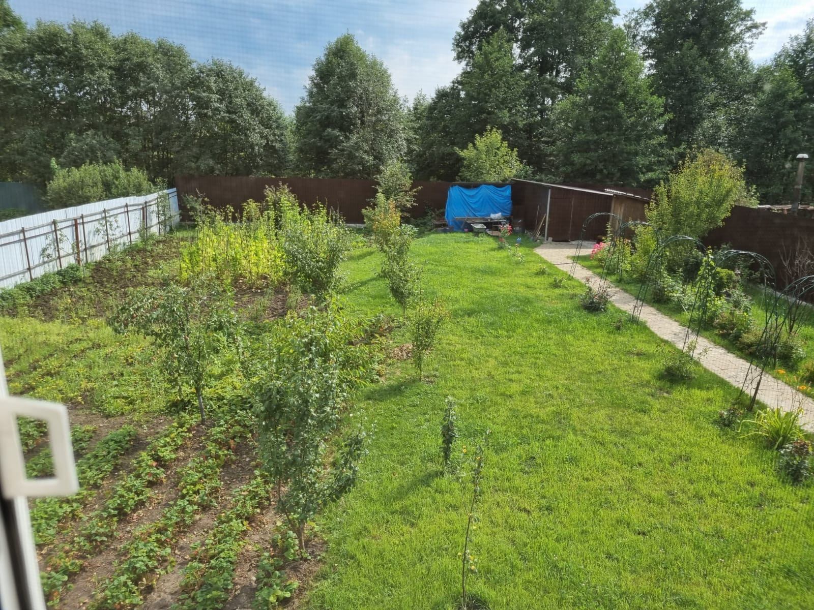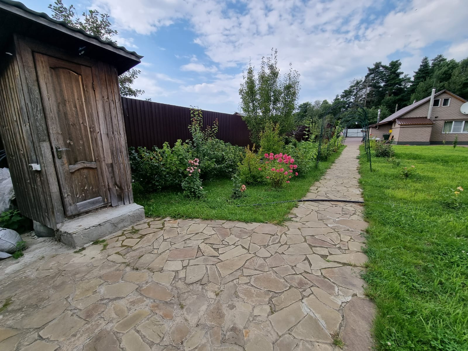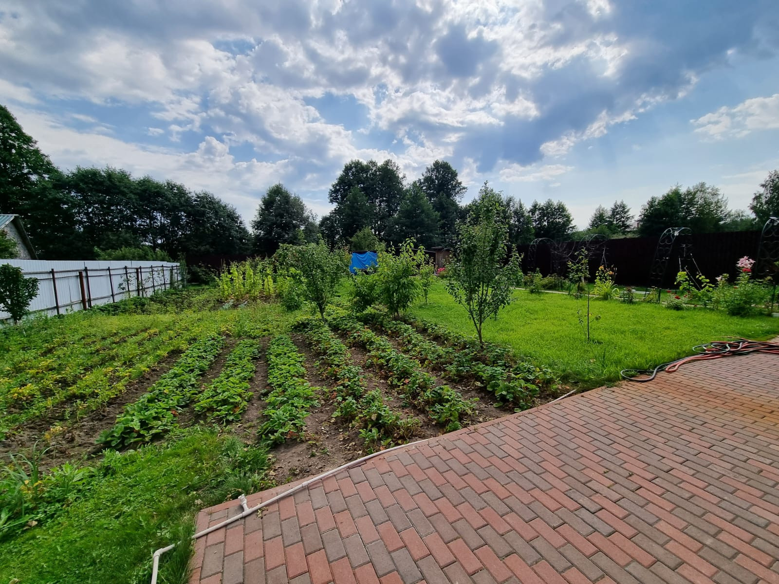 - Участок чистый, ухоженный. На нем растут различные плоды, цветы (видно на фото)