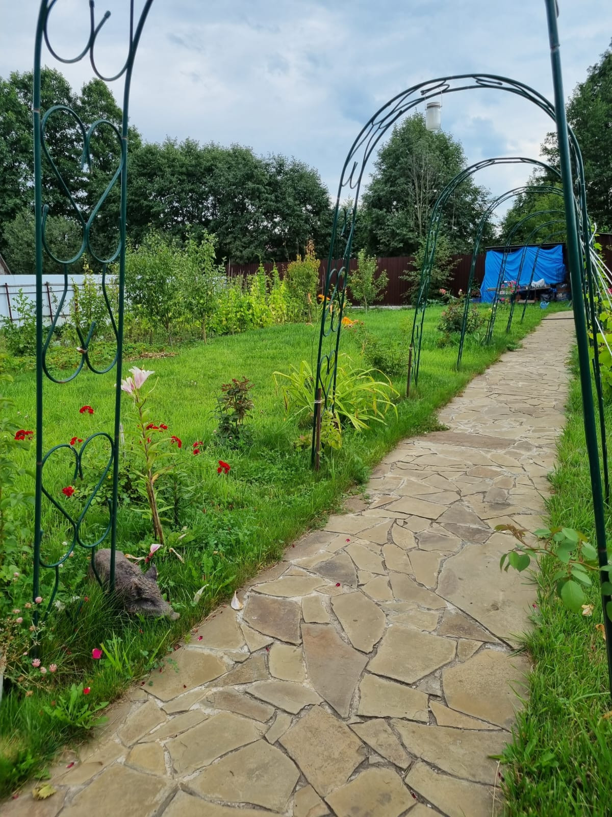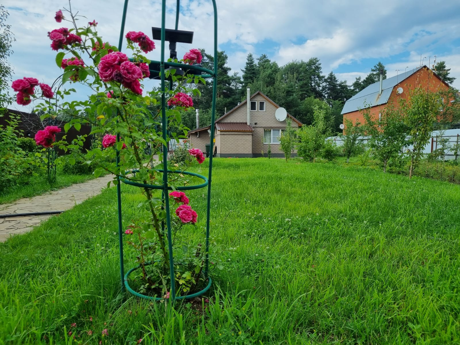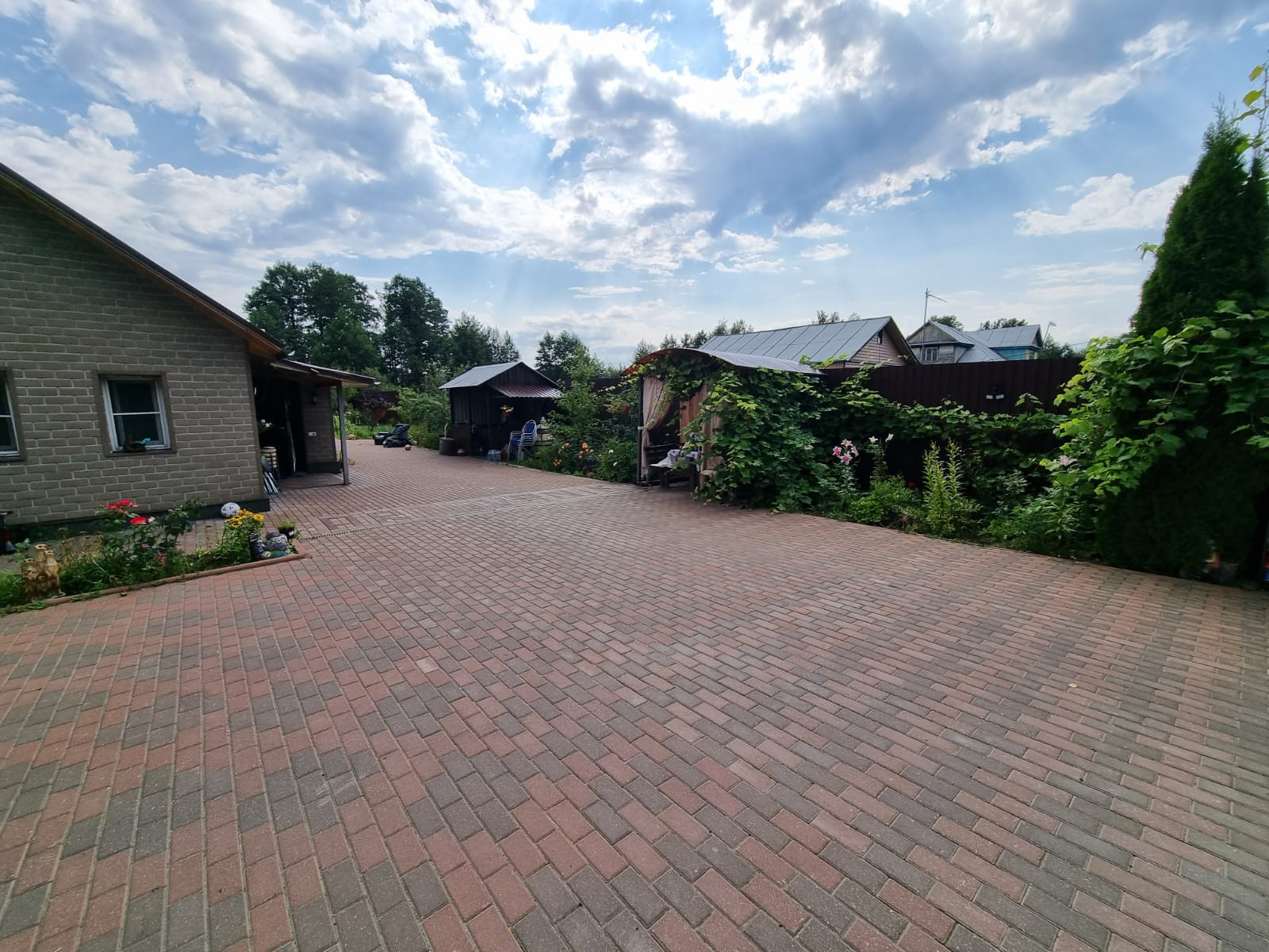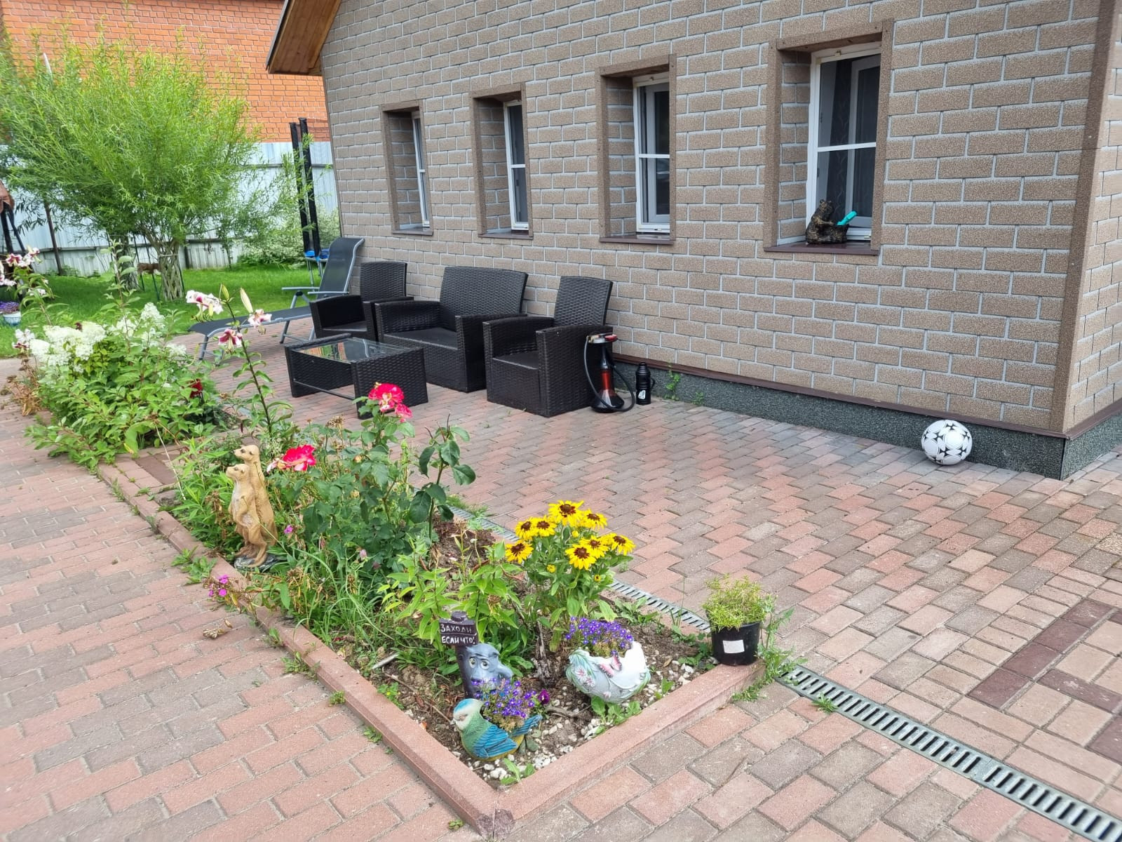 - Участок чистый, ухоженный. На нем растут различные плоды, цветы (видно на фото)
