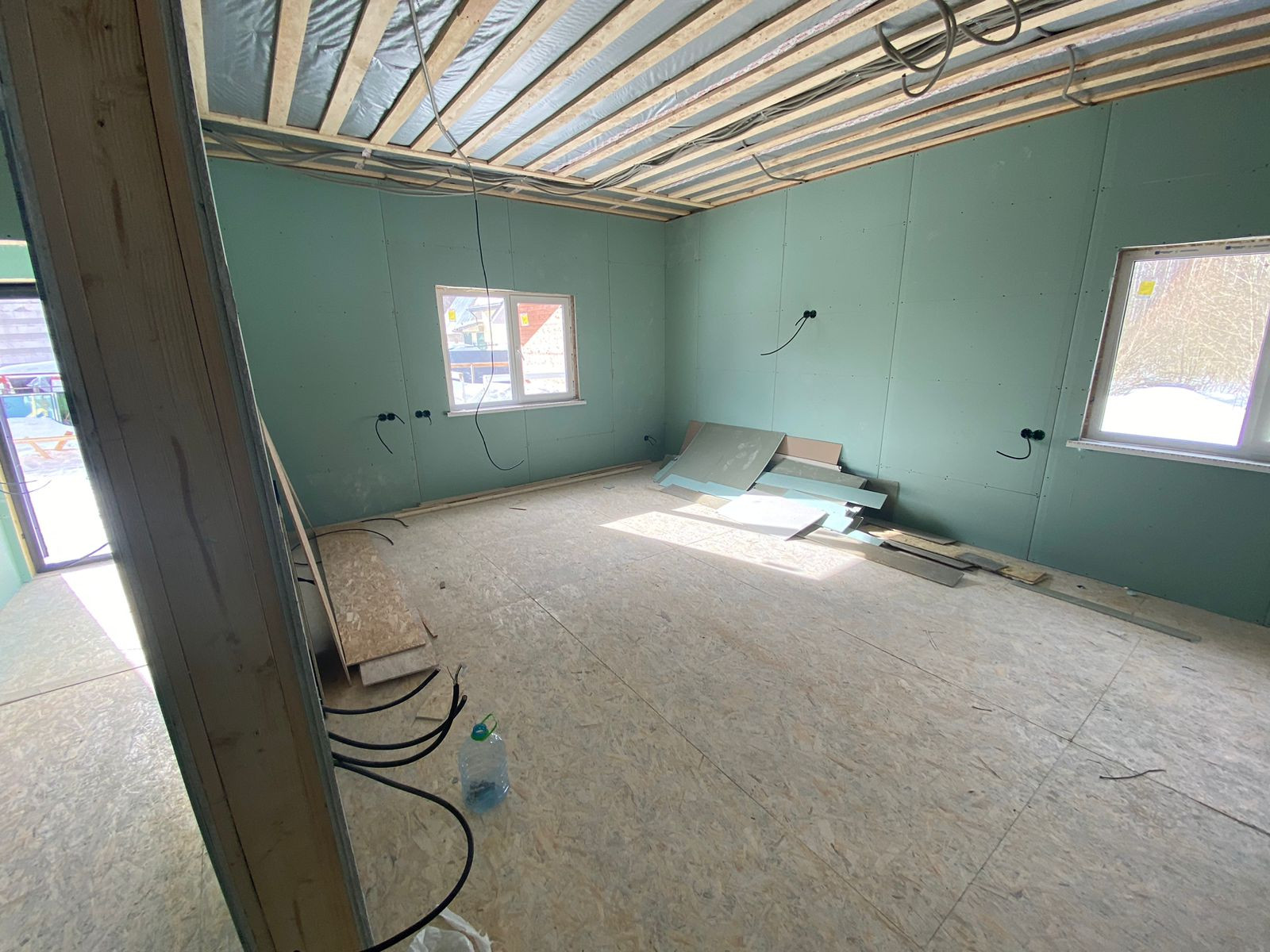 Дом одноэтажный, каркасно щитовой на вкрученных сваях, перегородки из хорошего гипсокартона, окна ПВХ, отделка дома из мягкого сайдинга. Свет подведён и разведён по дому, газ по границе, водоснабжение - скважина. Участок огорожен. Есть хорошая баня. В деревне детский сад, магазины, клуб, библиотека. Хорошее транспортное сообщение.