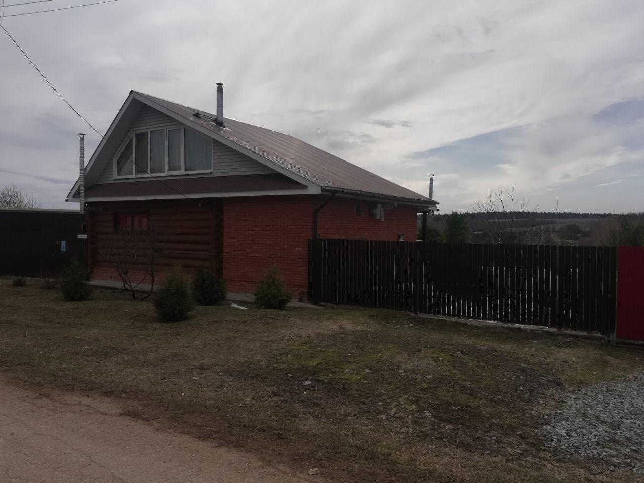 Дом построен из экологичных и качественных материалов по проекту. Фундамент железобетонный ленточный, монолитный высотой 1, 10 м. Стены из цельного бревна, пристрой из блоков, облицованных кирпичем, на мансарде облицовка сайдингом. Крыша покрыта профнастилом.