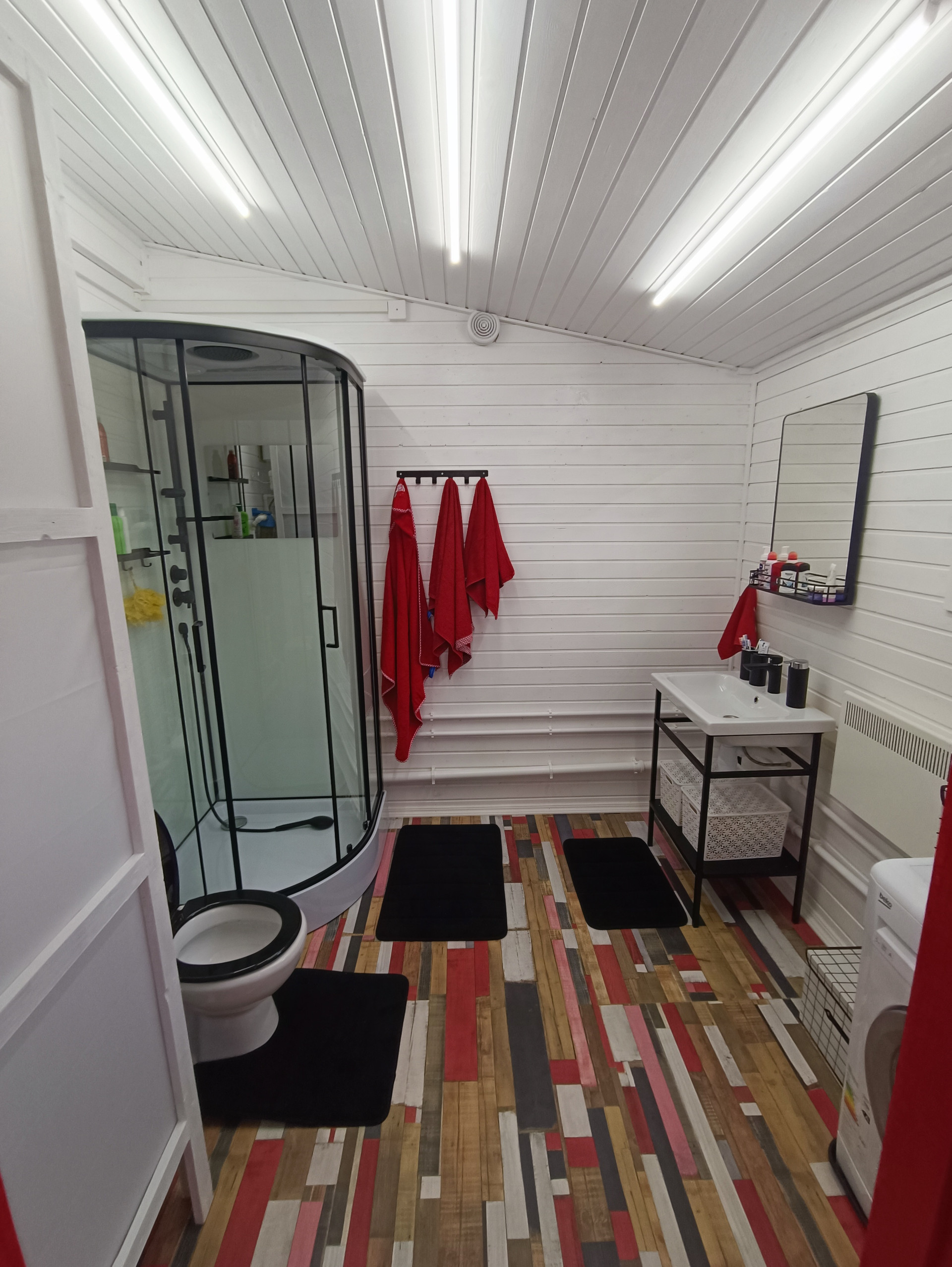 Скважина, септик, электричество 15кВт, видеонаблюдение, электрообогрев ( конвекторы энергосберегающие) и удаленное управление ими, газовый камин 5 кВт (разогрев зимой от -10С до +20 за 5 часов). Электропроводка: отдельная линия до каждой силовой розетки, распредкоробки только на освещении. Спутниковое ТВ. Водопровод: летний/зимний и смонтирован с возможностью разморозки дома зимой, бойлер 50 литров.