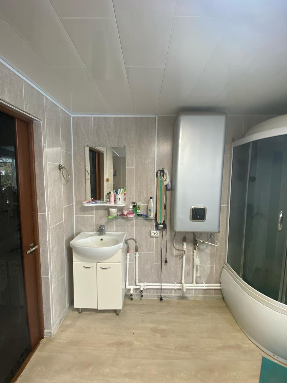 Продается дом из бруса в деревне Каргашино, обшит и утеплен в 100 мм, участок  ухоженный и правильной формы. Строили дом для себя и с огромной любовью. Установлены окна премиум класса. На первом этаже ванна с системой теплый пол фирмы Caleo, кессон с накопителем 100 литров,  кухня, очень большой зал с системой теплый пол фирмы Caleo и спальня. На втором этаже две большие комнаты по 26 кв. м с системой теплый пол фирмы Caleo. На участке имеется еще каркасный гостевой дом 5*6 кухня и комната. Площадка под 2 авто с автоматическими воротами, По всему участку много посадок, много туй. Очень хороший парник. В доме можно жить круглогодично, отопление теплый пол и конвекторы. Все для этого есть. Вода заведена в дом скважина 50м. Септик 12 колец. Все сделано по уму для зимнего проживания. Свет 15 кв. Ни разу проблем не было. Дом держит тепло. Вложено в дом очень много. Это с учётом, что цены были в 2 раза меньше на материалы. В дом реально вложено много души. Деревня есть в списках на газификацию. В шаговой доступности пруд, лесной массив. Дорогу в деревне чистят постоянно, ходит автобус. Отличная альтернатива квартире.   Реальному покупателю торг.