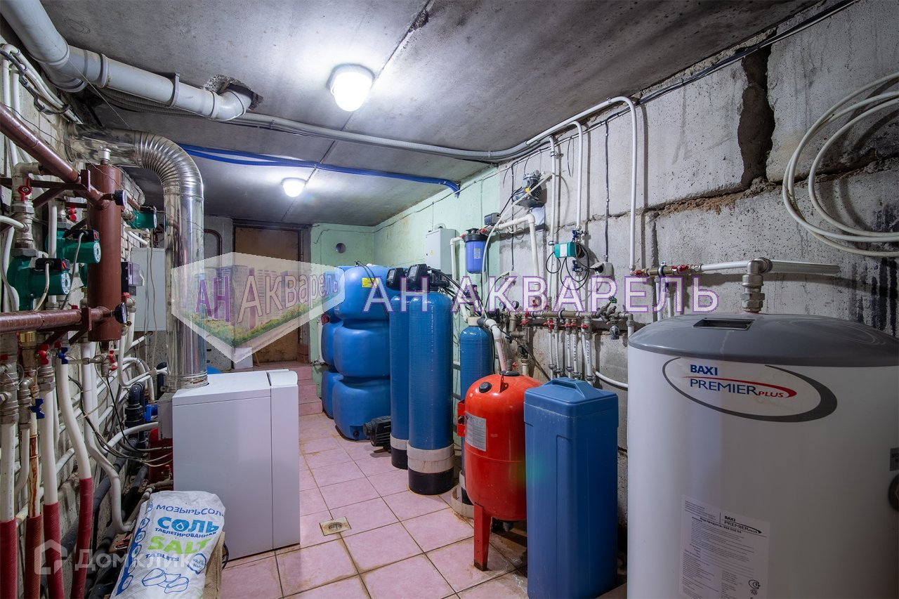 В цокольном этаже- спортивный зал, действующий бассейн, сауна, техническая комната(котельная) с системой очистки и подогрева воды, газовым котлом.