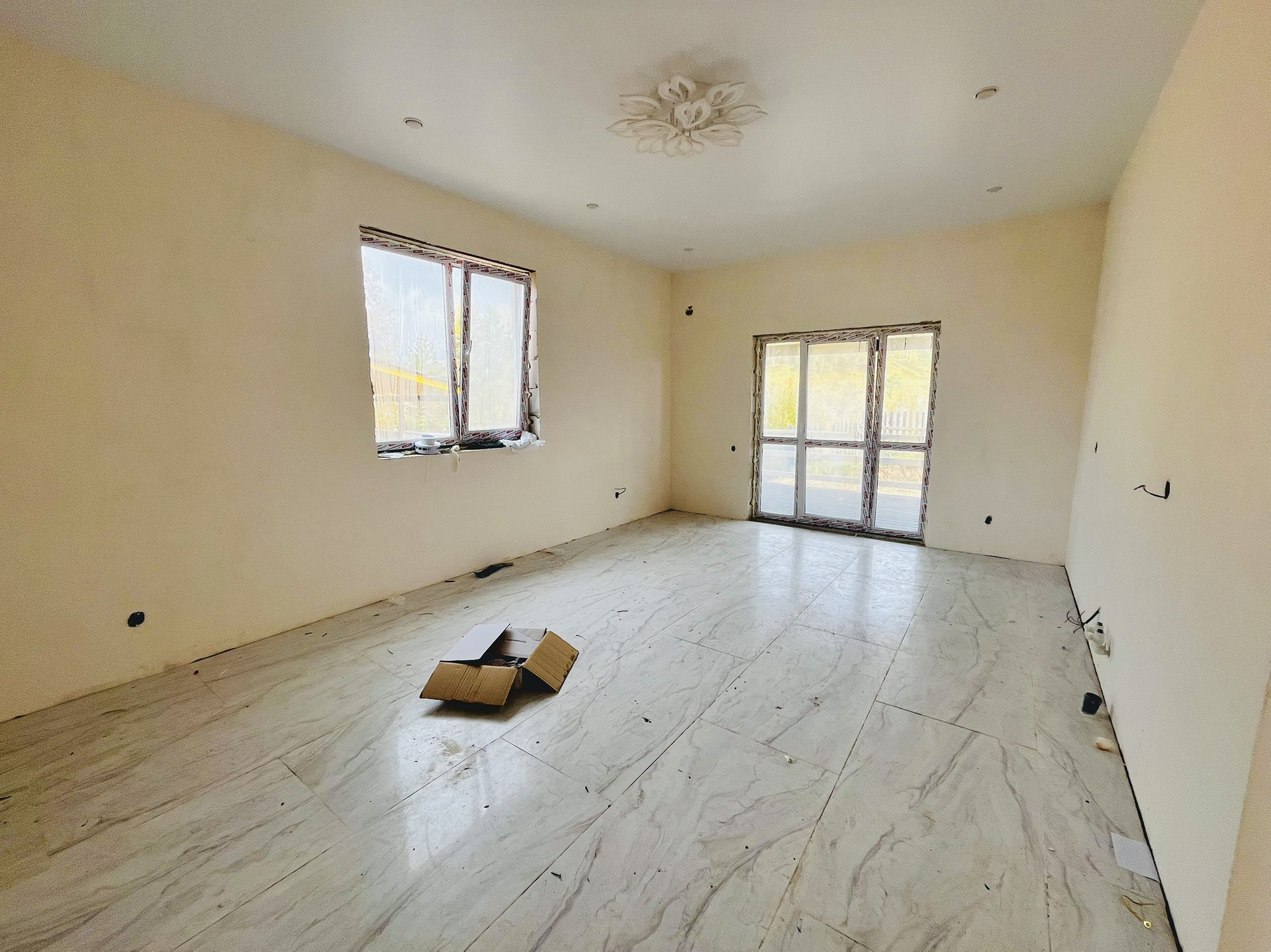✅ В доме установлены теплые полы и натяжные потолки с точечным освещением. Кроме того, выполнена установка всей необходимой сантехники и электрики.