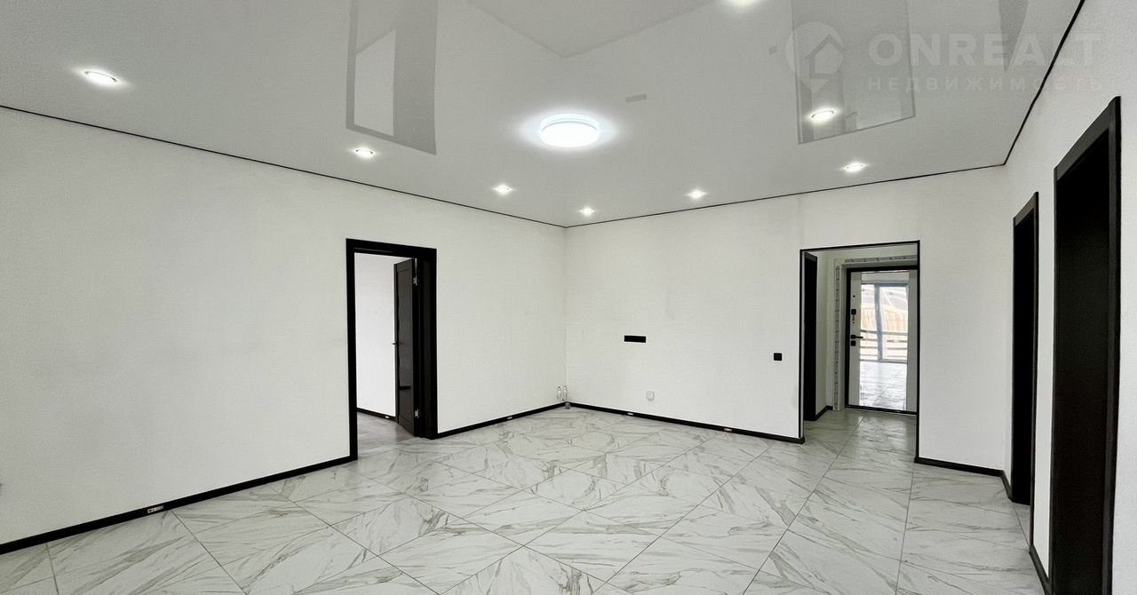 Потолок натяжной с точечным освещением.