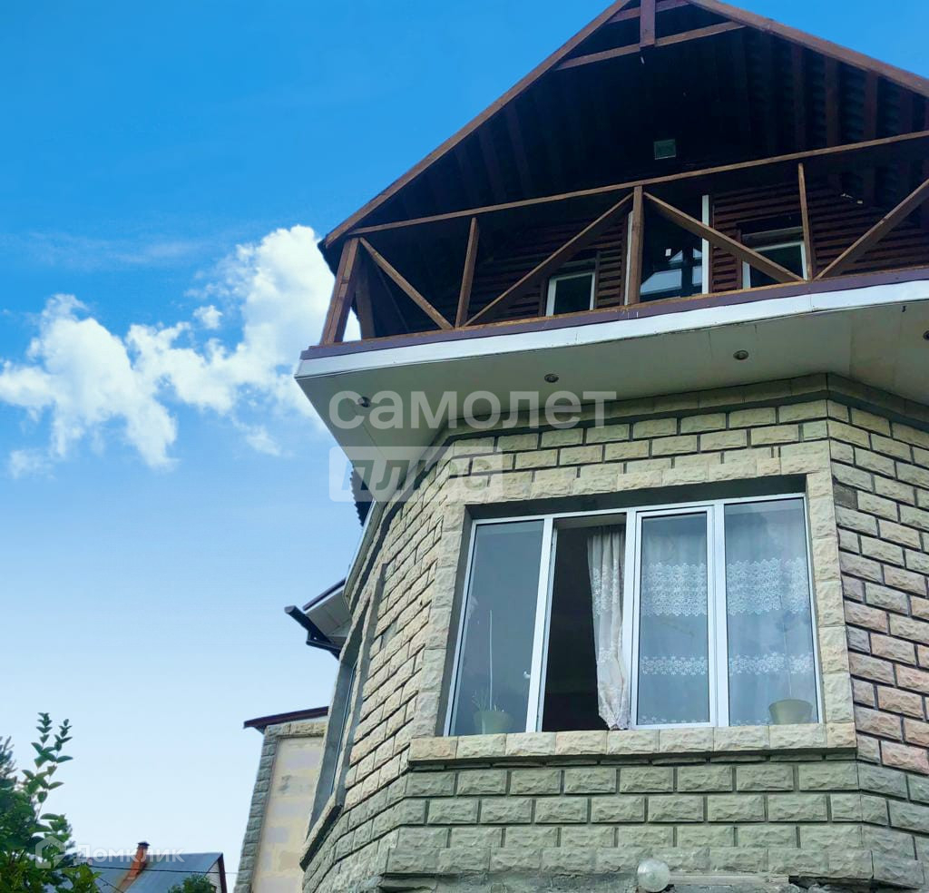 Материал стен - блоки, крыша металлочерепица, фундамент - монолит. Второй этаж отделан деревом.