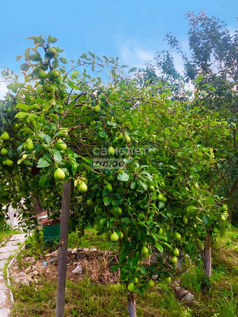 На участке фруктовые деревья: груши, яблони, сливы, черешни.