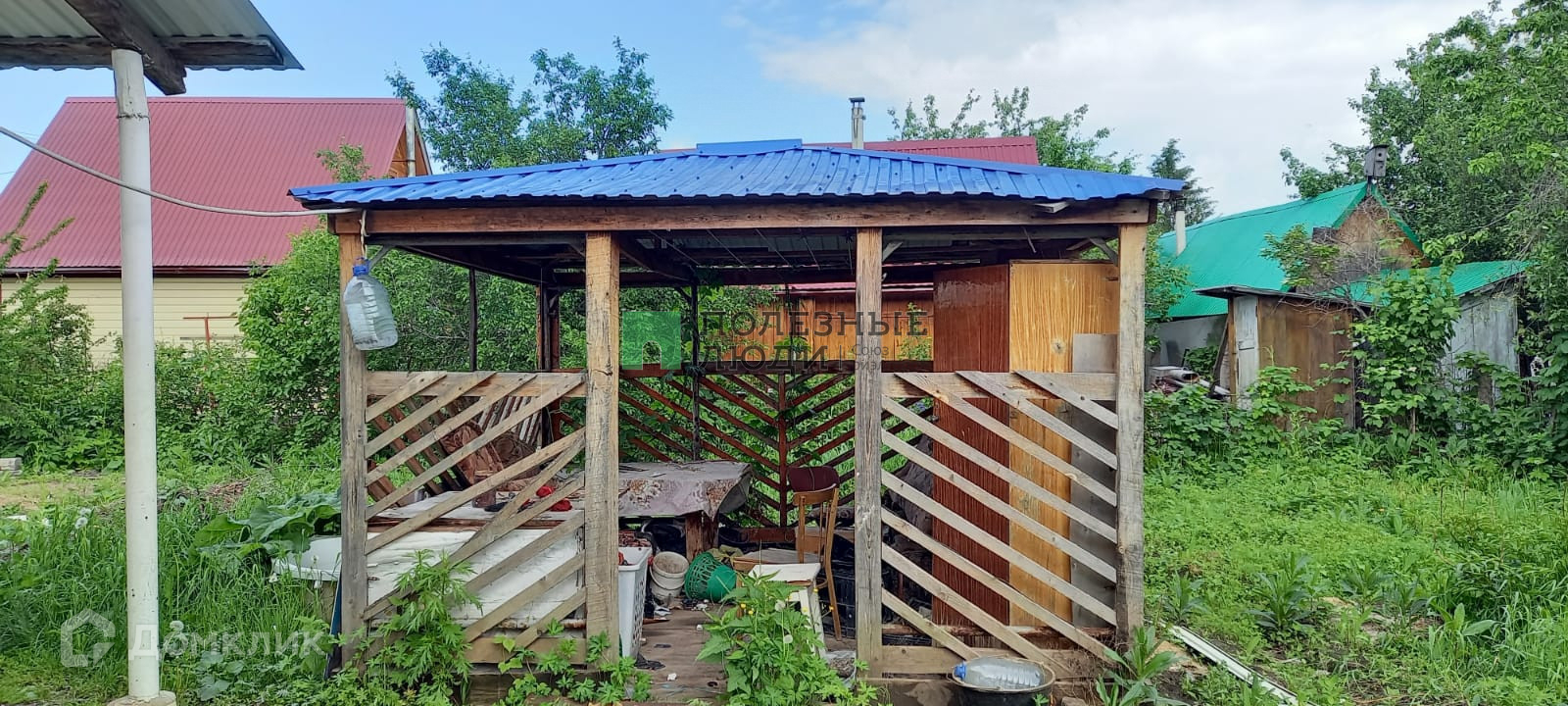 На территории расположены: беседка, сарай, местом д/стоянки машины.