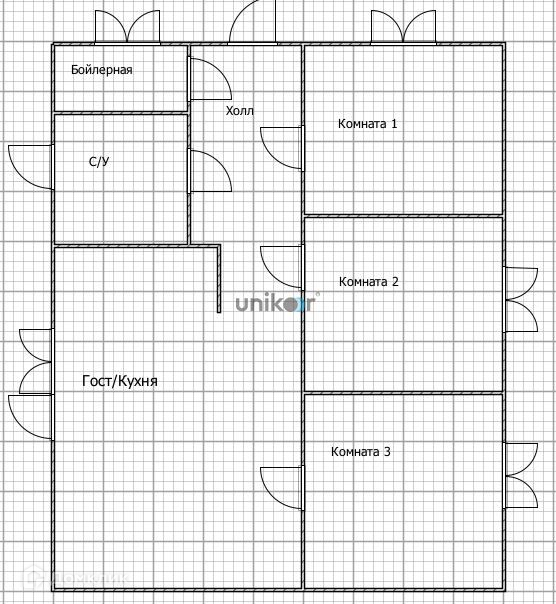 ✅ планировка: Гостиная-кухня,3 спальни, с/у, бойлерная