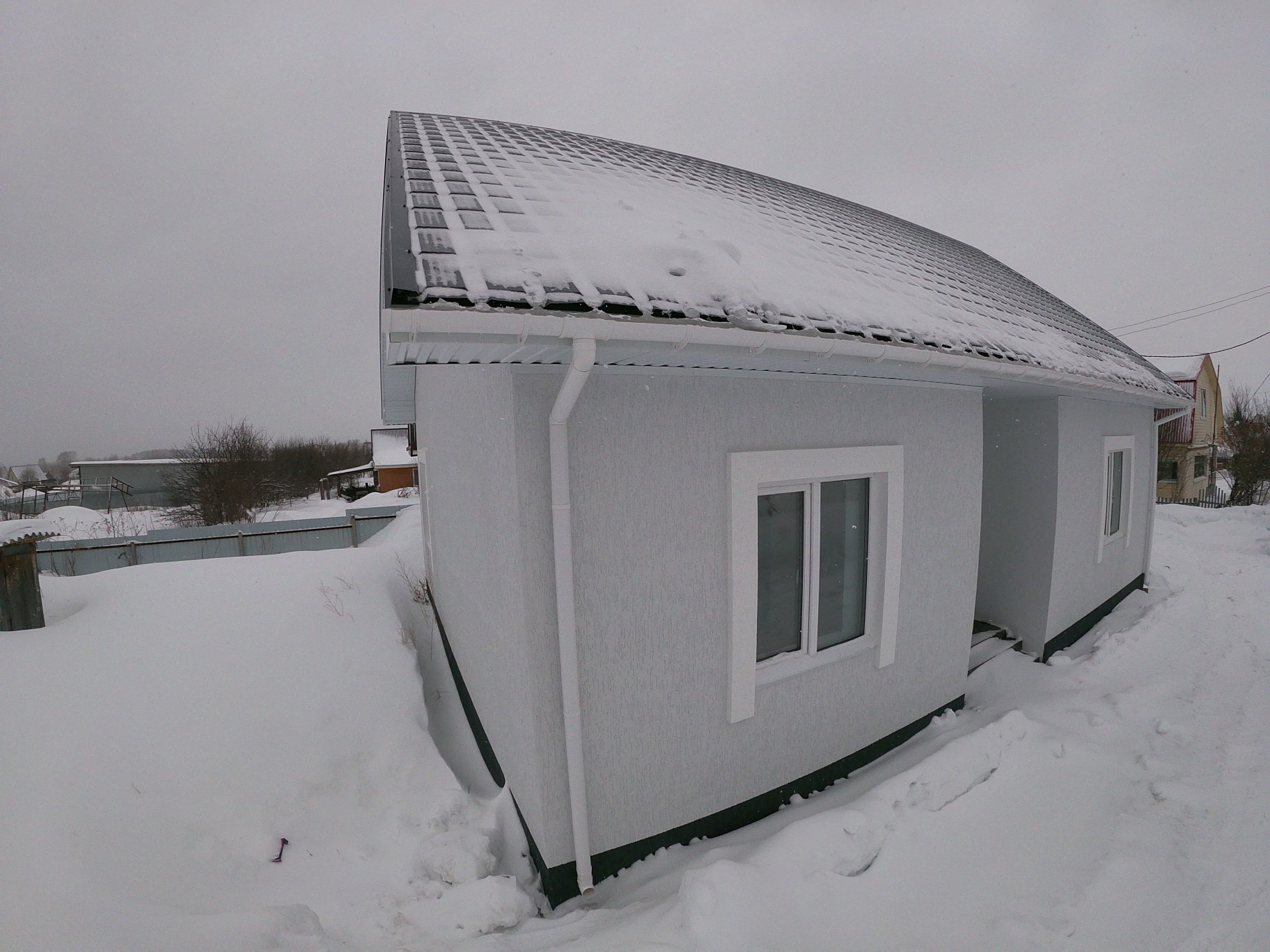 Стены дома: - газобетон, плюс утеплитель 100 мм, снаружи фасадная штукатурка Премиум класса.