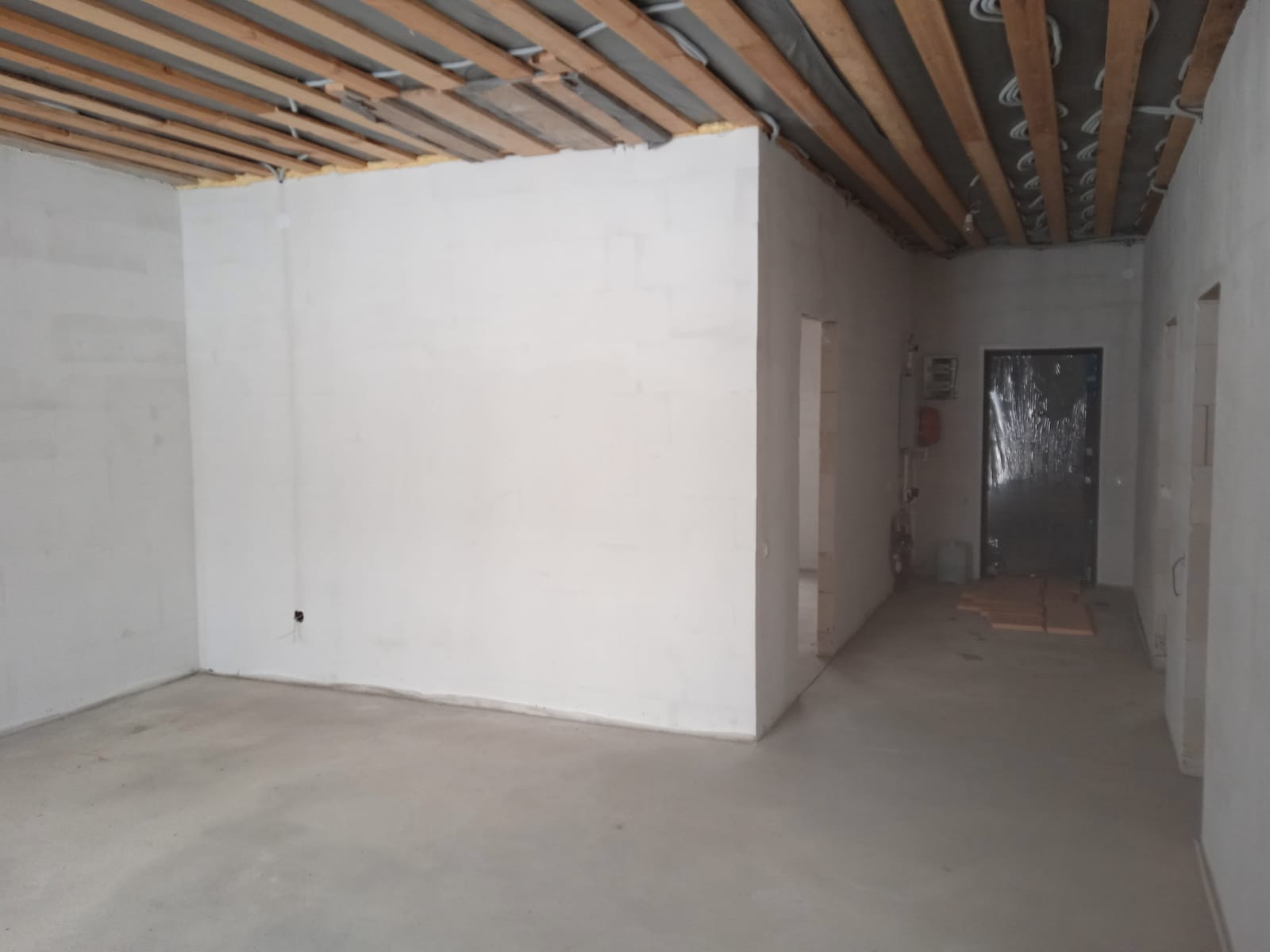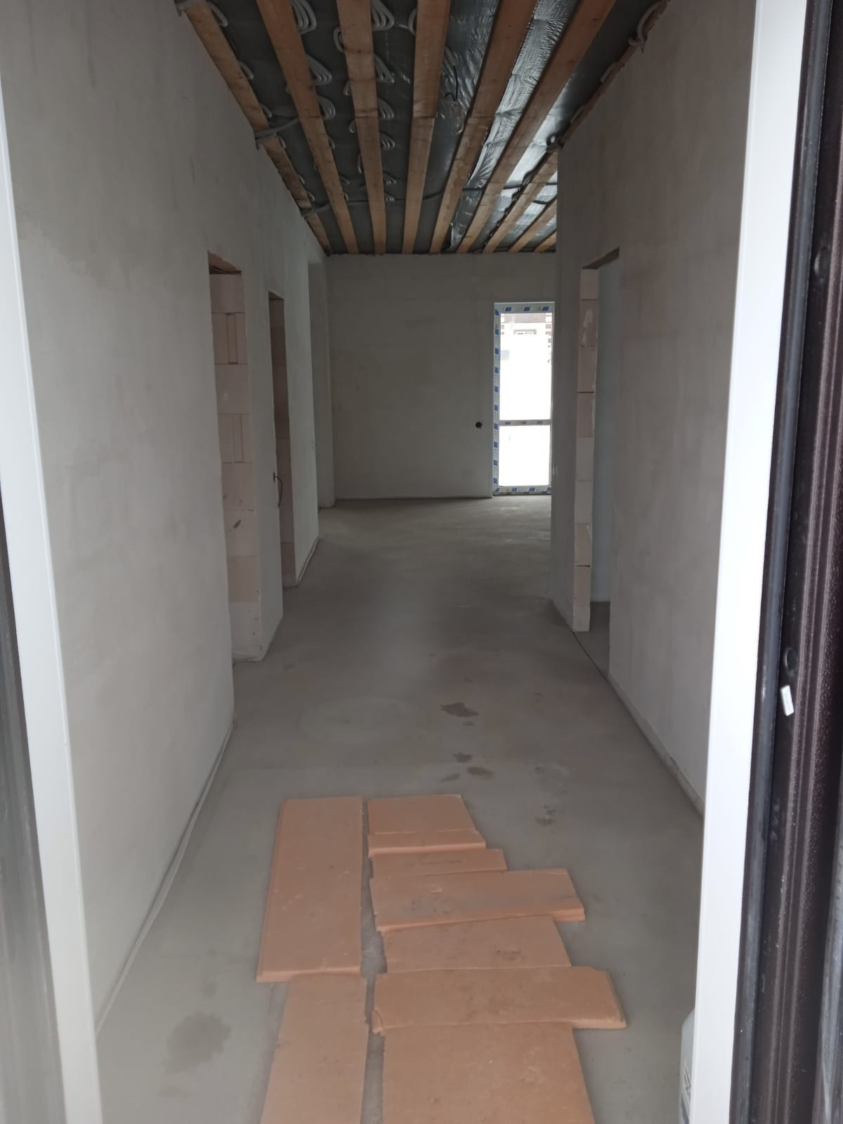 напольное покрытие: полусухая стяжка идеально ровная , позволяет уже уложить ламинат