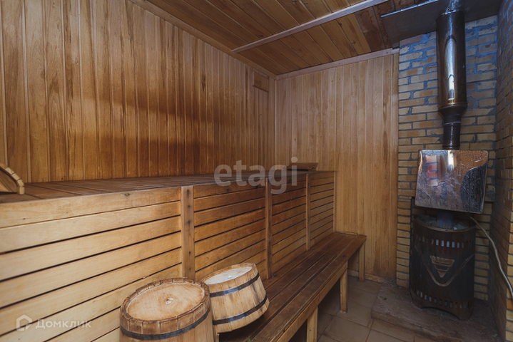 На первом этаже пристроя, сделанного из бруса 180х180мм, находится действующая баня.