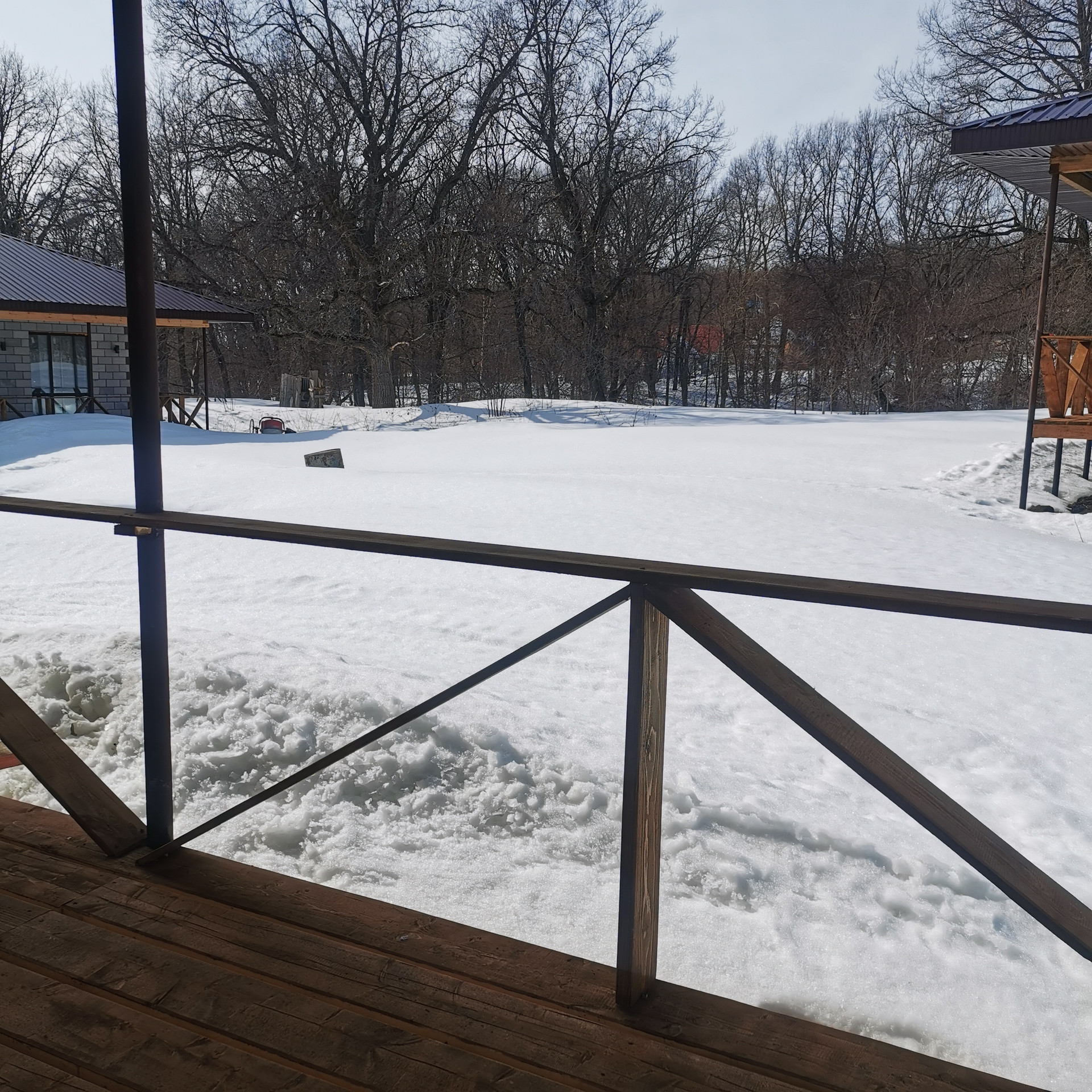 - терраса уже готовая с полами и под кровлей