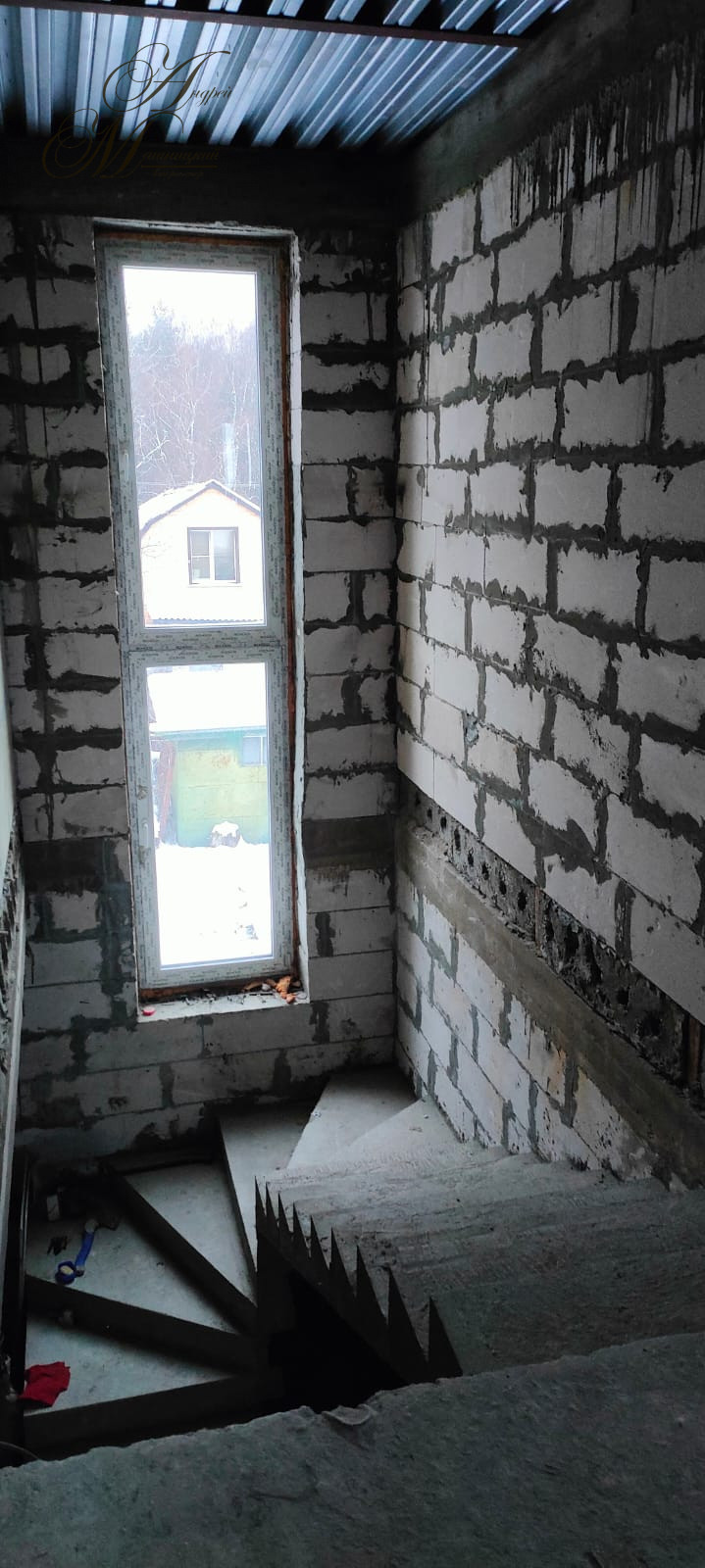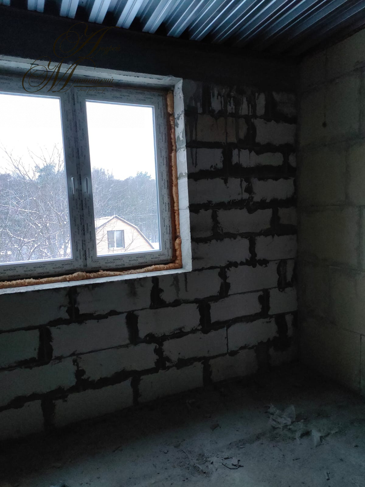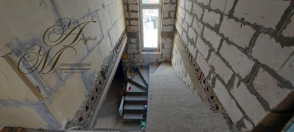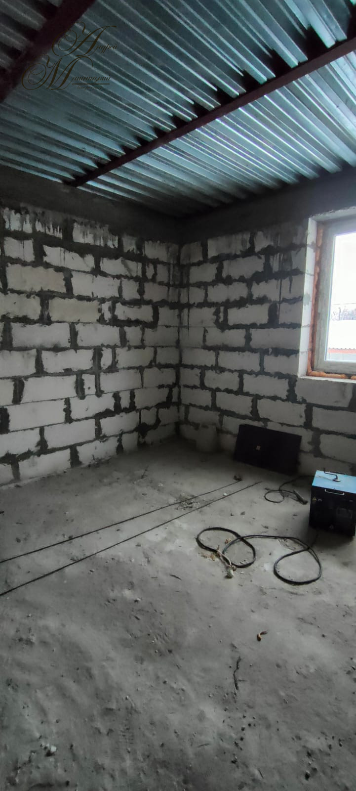 Мощный фундамент. Стены выложены из двух газосиликатных блоков, каждый толщиной 25 см,
