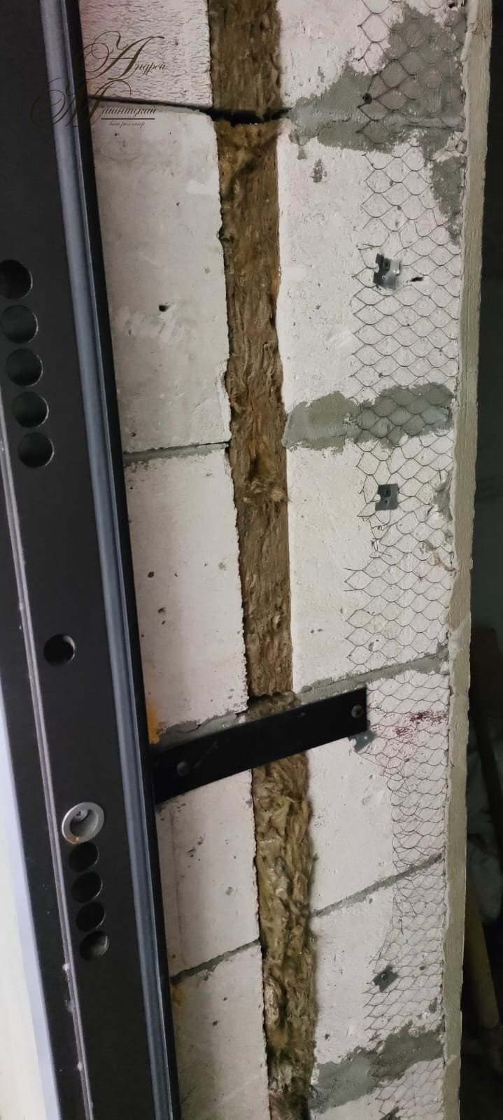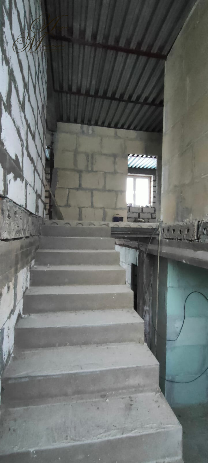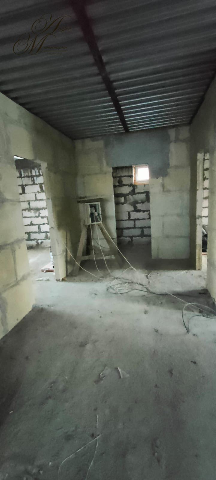 Мощный фундамент. Стены выложены из двух газосиликатных блоков, каждый толщиной 25 см,
