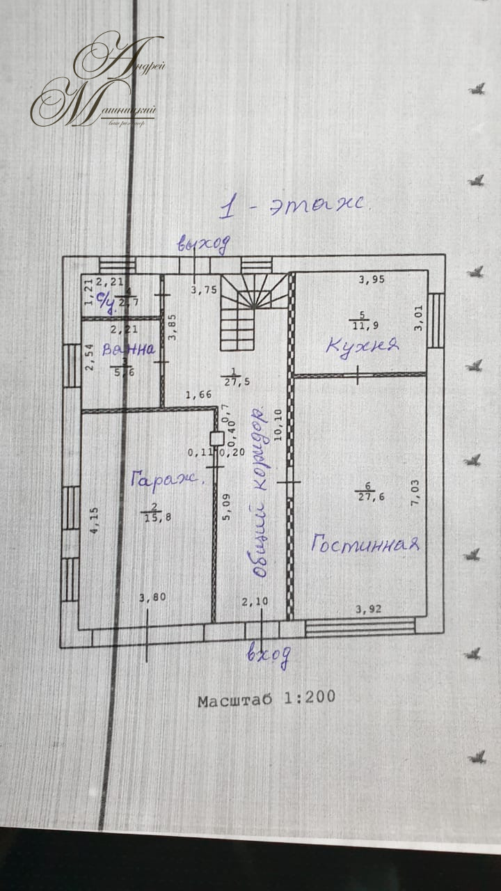 1 этаж - гостиная 27,6 м², кухня 12 м²,