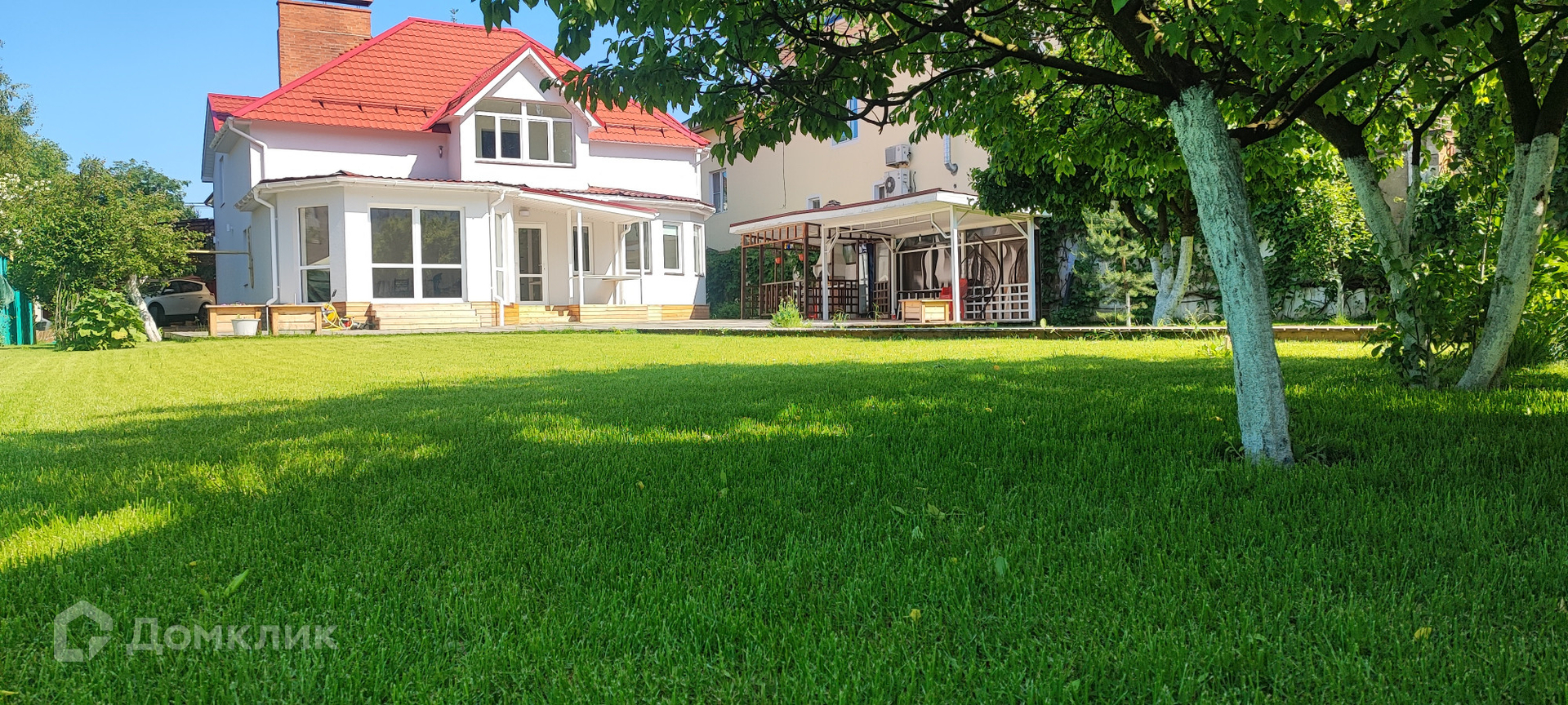 На территории дома есть детская площадка, колодец и два домика.