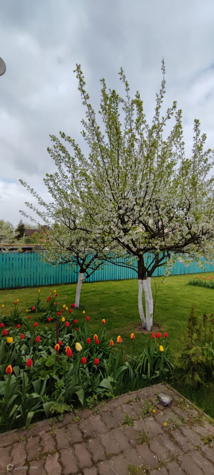 Остальная зона земли покрыта газонной травой, цветами, плодовыми деревьями.