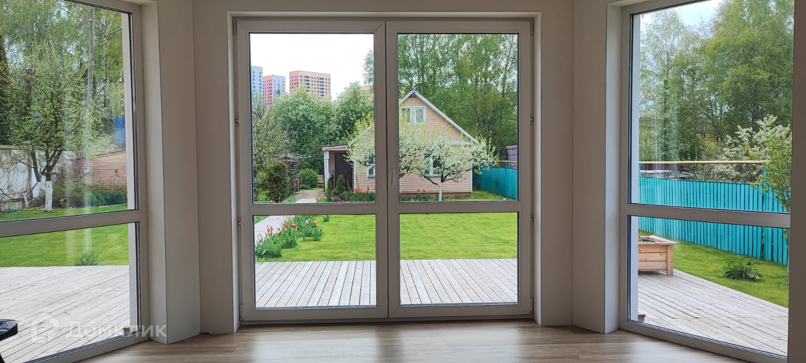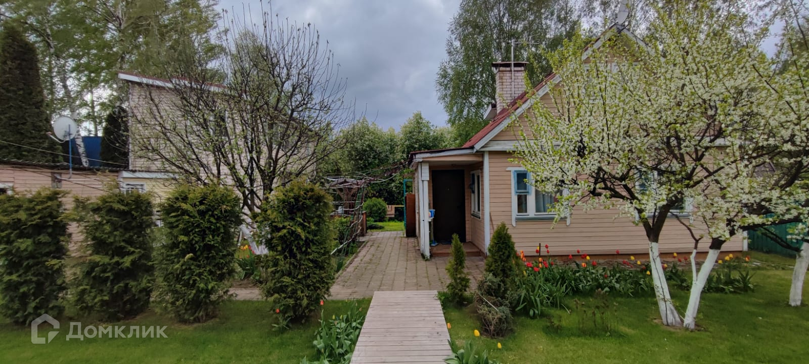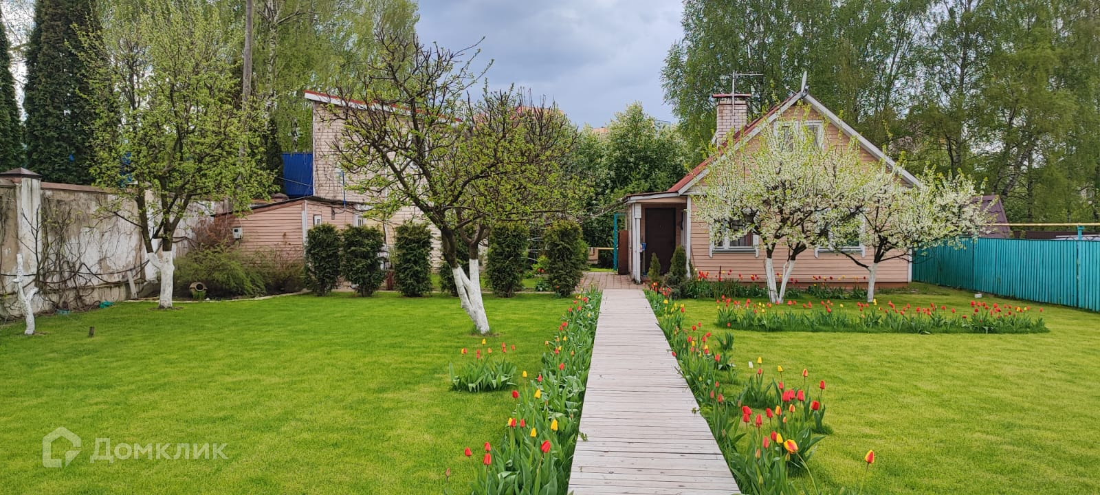 Остальная зона земли покрыта газонной травой, цветами, плодовыми деревьями.