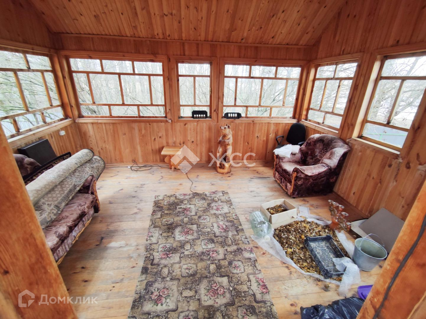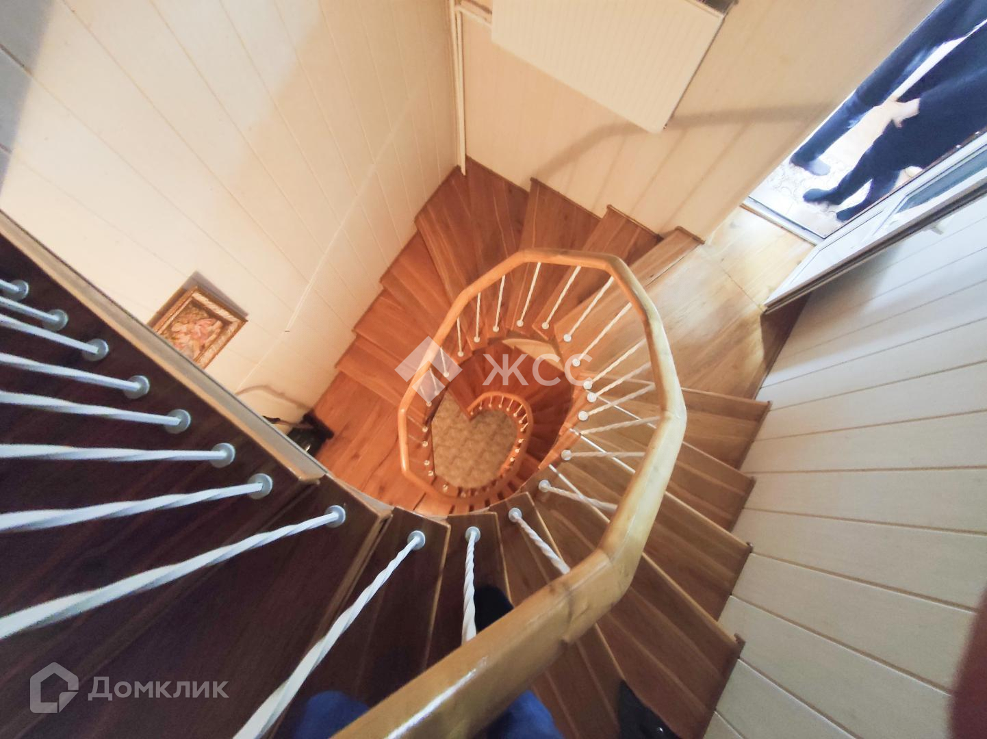 Между 1 и 2 этажом большой застекленный балкон с панорамным видом на реку.