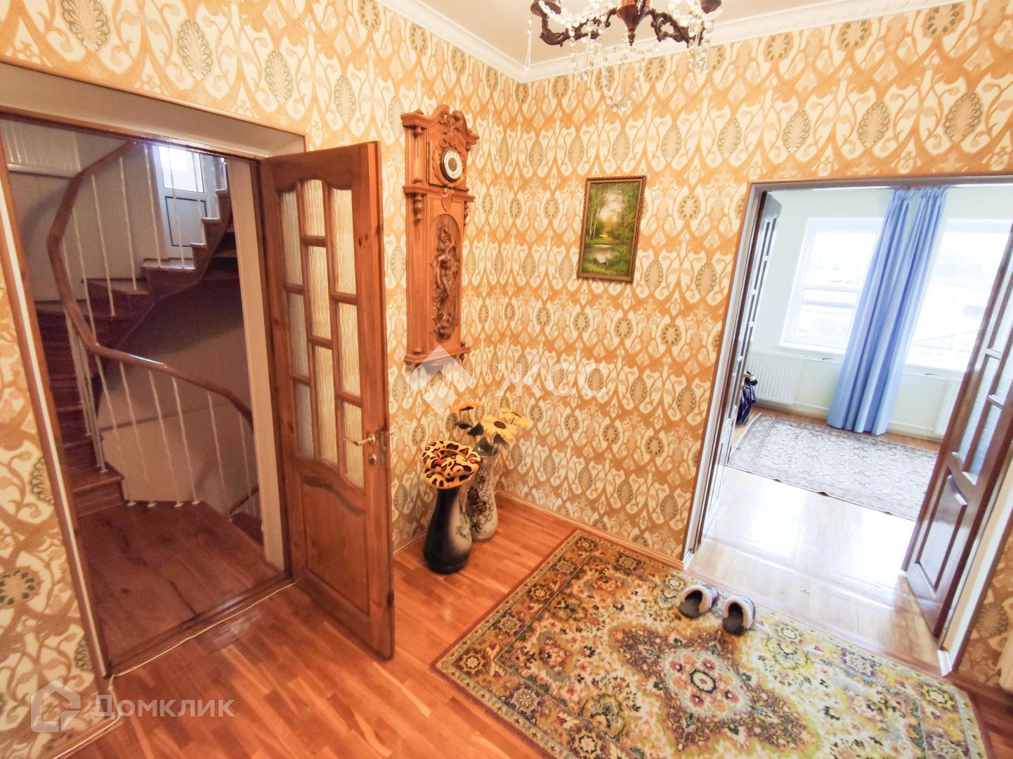Паркет по всему дому- клен, дуб, сосна.