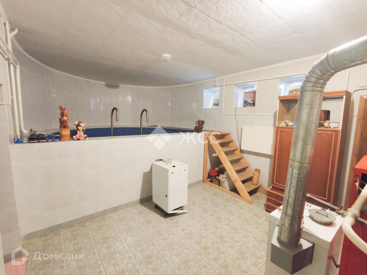 В цокольном этаже дома расположены: сауна, душевая, бассейн, винный погребок, котельная, охотничья комната.