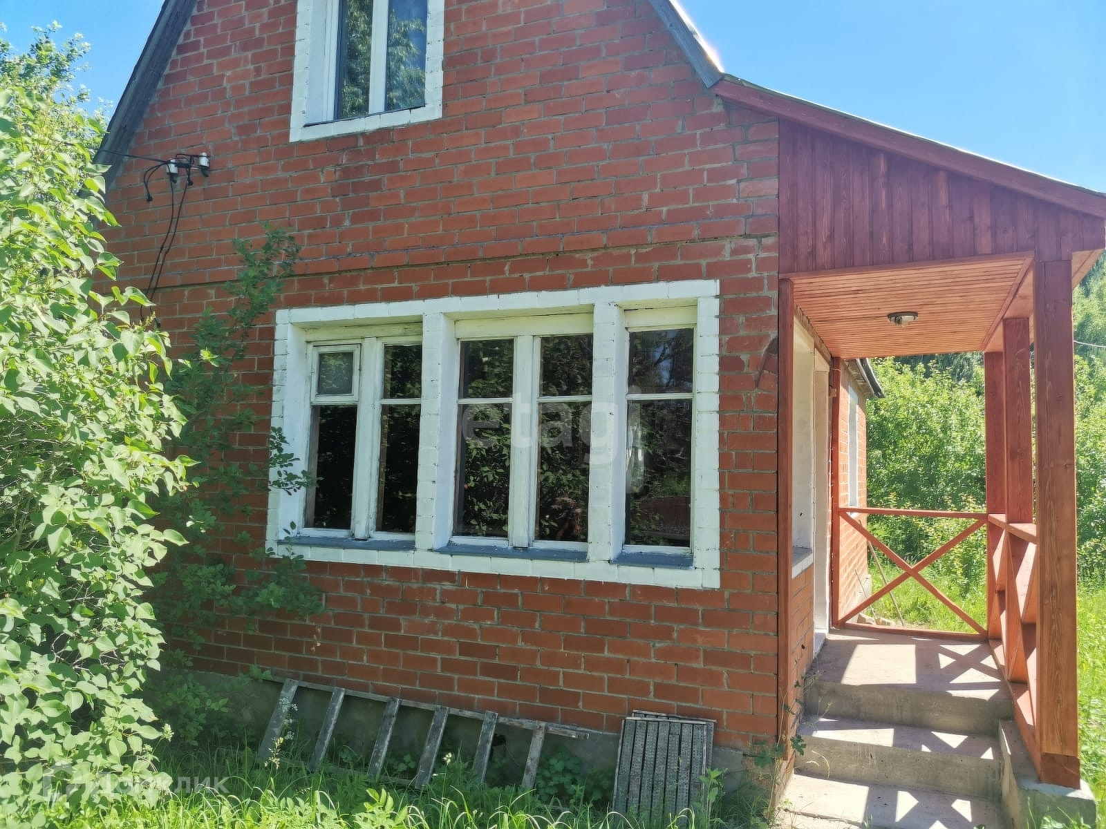 Дом 1993 года постройки. Площадь дома 64,4 м2. Дом из бруса, облицовка - кирпич, двухэтажный мансардного типа.